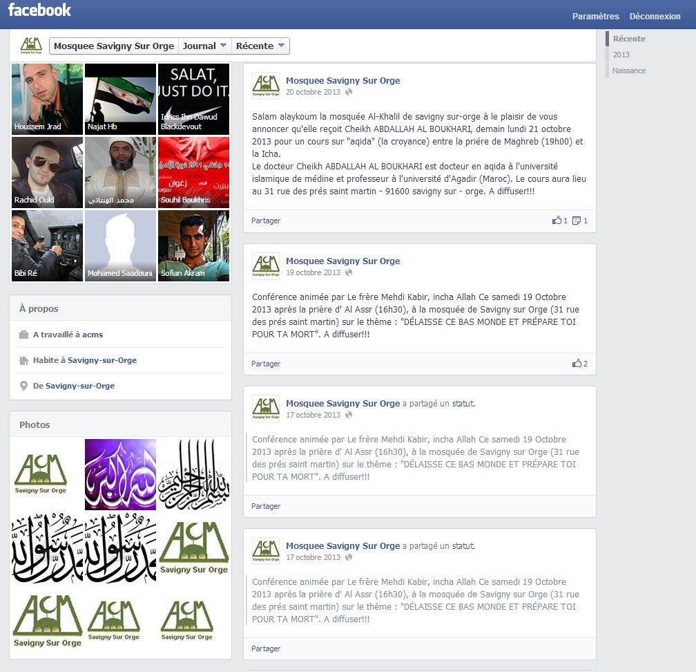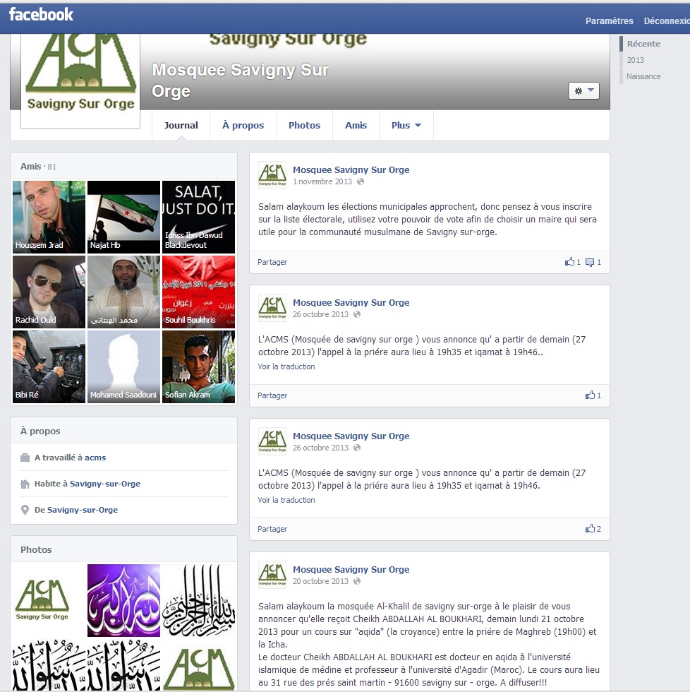 – Le 1er novembre 2013 : « Salam alaykoum les élections municipales approchent, donc pensez à vous inscrire sur la liste électorale, utilisez votre pouvoir de vote afin de choisir un maire qui sera utile pour la communauté musulmane de Savigny sur-orge. »