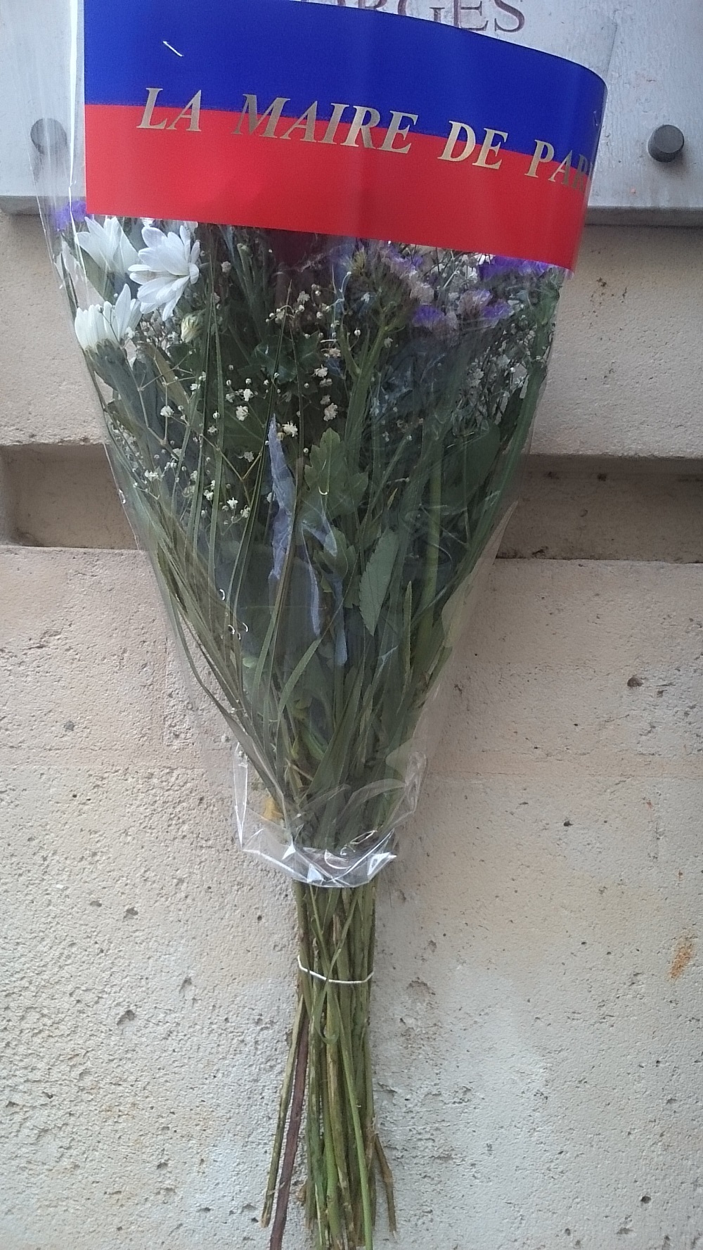 Sur chaque bouquet, qu’elle n’a sûrement pas pu poser en personne, on retrouve l’inscription « La Maire de Paris ».