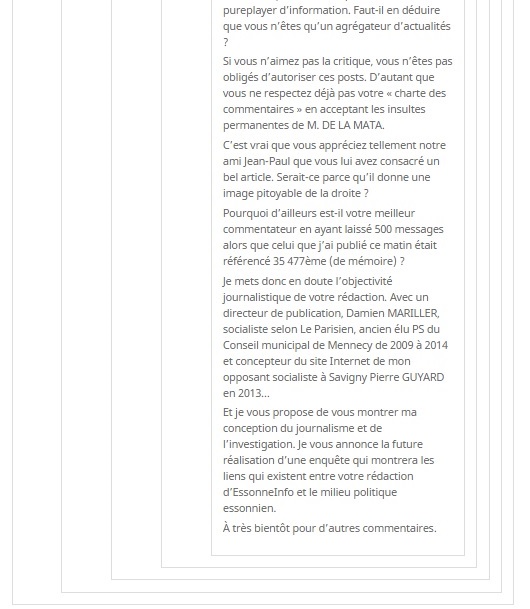 Tiens, mes commentaires ont disparu d’EssonneInfo