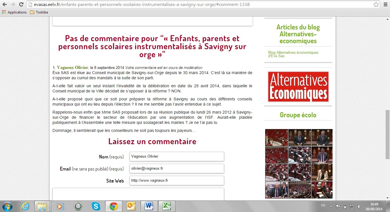 Il y a un mois jour pour jour, je me permettais de commenter un article de notre député sur l’épisode des rythmes scolaires à Savigny. Après deux semaines de modération, j’ai eu la tristesse de constater que les commentaires de l’article étaient mystérieusement fermés. Mes propos, rappelant les promesses de campagne de la candidate SAS auraient-ils déplu ? Ils sont beaux, ceux qui se disent démocrates… Bravo l’élue de la Nation !