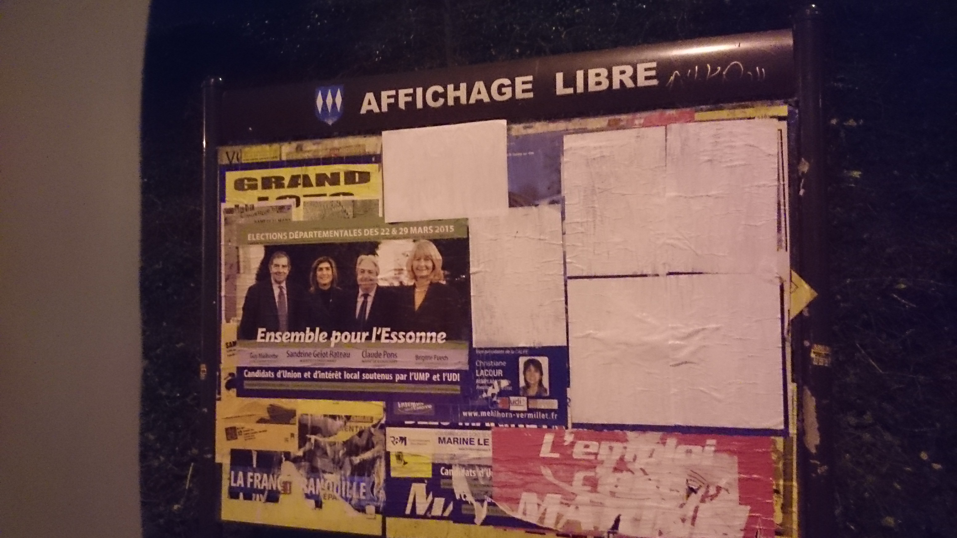 À propos, il faudra apprendre au colleur de l’UMP que la commune d’Épinay-sur-Orge ne se situe pas dans le canton de Savigny-sur-Orge. Mais cela ne m’a pas empêché de passer à l’action, accompagné d’un volontaire savinien, afin de faire entendre qu’il est aussi possible de voter blanc ce dimanche au second tour.