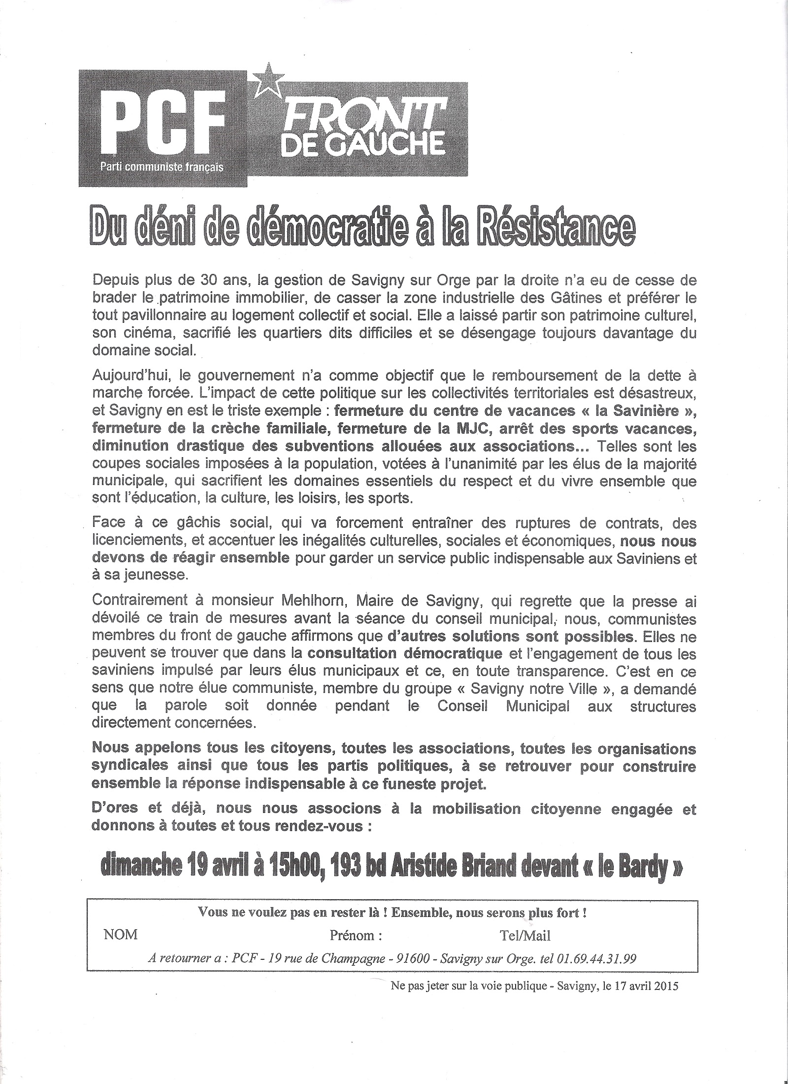 Le PCF en plein déni de réalité, pour qui tout est de la faute du gouvernement de gauche (qui ne rembourse pas encore la dette de Savigny)