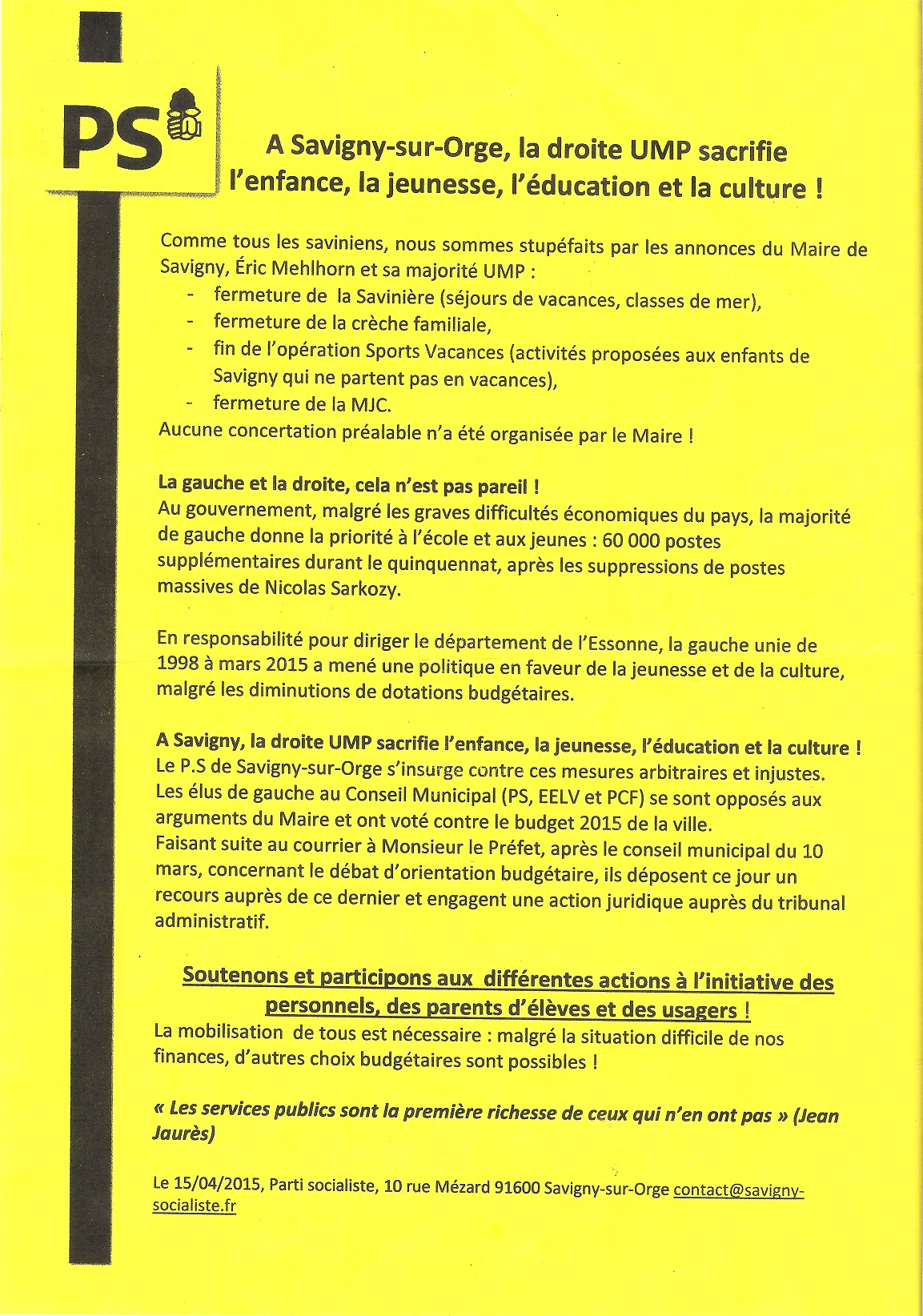 Je voudrais ensuite rappeler au PS que l’Éducation nationale continue de payer 20 000 profs à se tourner les pouces (du genre de Jean ESTIVILL qui n’a longtemps pas travaillé avant d’être à MERMOZ) tandis que plusieurs milliers font défaut en France (300 en Seine-saint-Denis). Qu’il manque à l’heure actuelle 25 000 candidats dans les concours de professeurs de collèges, qui sont réussis avec 4/20 de moyenne générale… À chacun ses priorités.