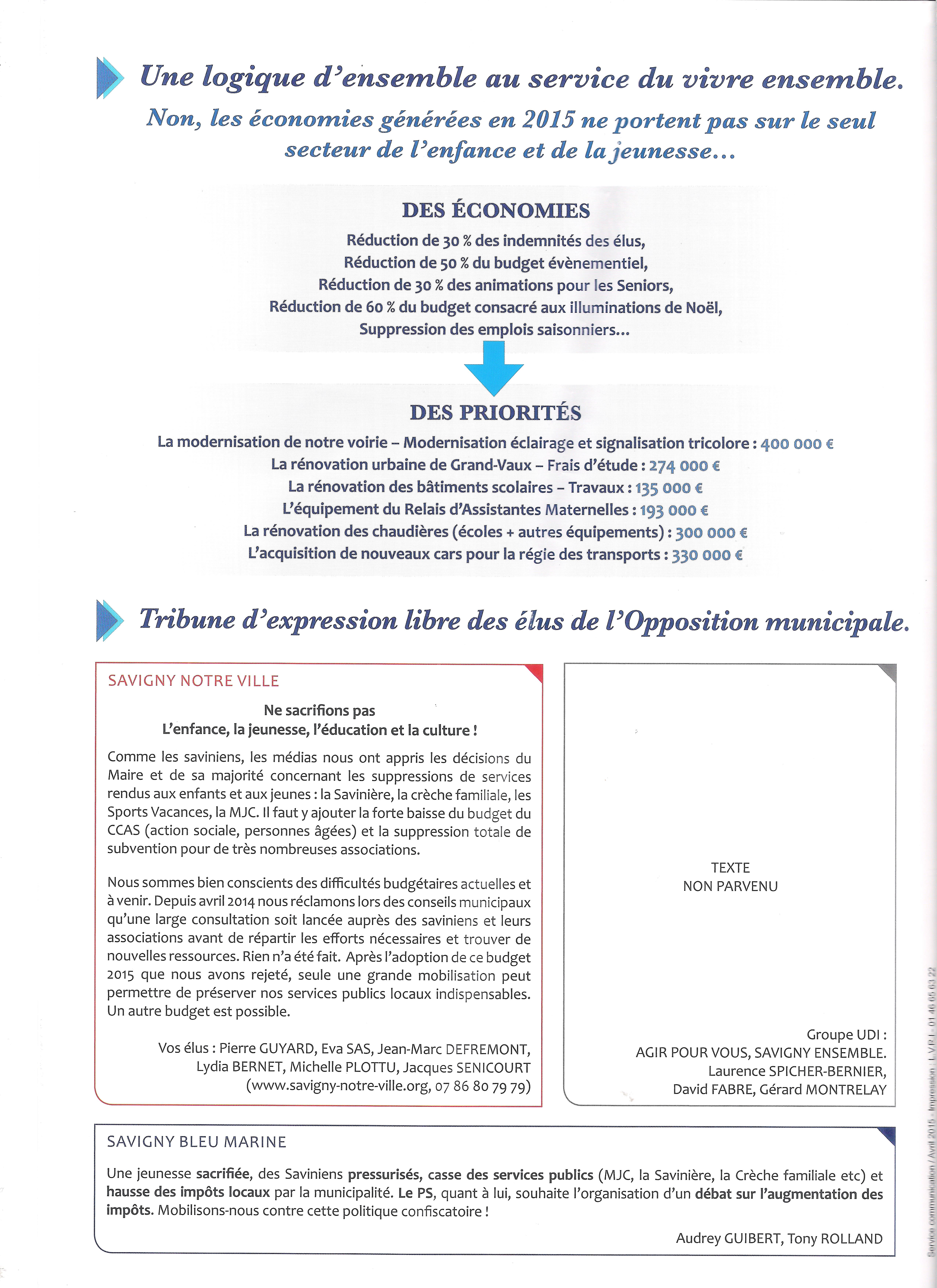 Edit : le texte du groupe d’opposition « Agir pour vous, Savigny ensemble » envoyé par David FABRE