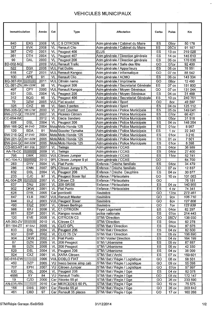 Ma demande datait du 30 avril 2015, la réponse arrive juste avant la date fatale des trente jours au-delà de laquelle je peux enclencher une procédure pour que la Ville soit forcée de m’envoyer le document. Maintenant tout l’enjeu va être de savoir ce que vont devenir ces véhicules dans le cadre de notre agglomération. Car si cela se trouve, au 1er janvier 2015, la moitié ont été cédés à la CALPE. Ils le seront peut-être sinon demain…