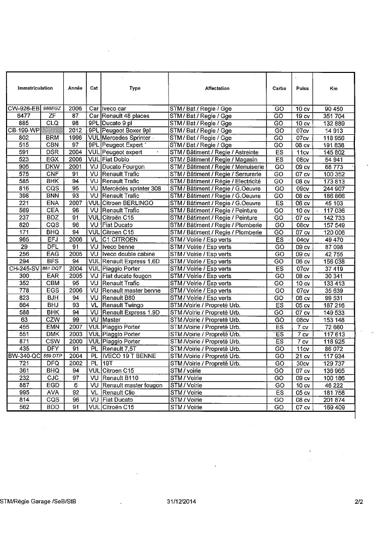 Je lis en page 2 du procès verbal de la commission Transports et sécurité du 21 mai 2014 que vous souhaitiez avoir des « informations sur la flotte de véhicules municipaux et sur la régie des transports municipaux« .
