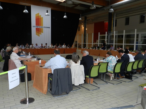 Quelle n’est pas ma surprise en quatre ans de conseils de voir pour la première fois des barrières séparant le public et les élus. À Savigny, c’était rouge sous SPICHER et bleu sous MEHLHORN. Ici, c’est vert fluo. Interrogé, le conseiller communautaire Francis SAINT-PIERRE (Juvisy) confie que c’est par peur de débordements du collectif qu’elles ont été installées. Le collectif ne s’est pourtant jamais montré violent.