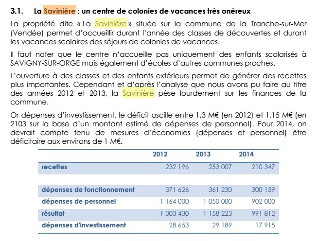 Les partisans mehlhorniens ne manqueront pas de le féliciter : il préserve le centre de vacances qui appartient toujours à la Ville. Il le fait entretenir sur place. Au lieu que cela coûte 1 000 000 € de déficit à la Ville, voilà qu’elle va s’enrichir de 50 000 €. M. MEHLHORN fait donc économiser 1 050 000 € à Savigny, mais à côté, ce sont les Saviniens qui vont devoir dépenser pour ce service.