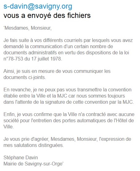 Aussi comme la municipalité a dû modifier la convention qui la liait à la MJC pour la reconduire pour une durée de temps limitée (jusqu’à décembre), au lieu d’une année pleine (sinon trois ans), elle a dû reproposer à signature une convention. Aussi lorsqu’avec mes amis du Collectif « Sauvons l’enfance de Savigny », ayant lu la décision suivante en date du 29 mai, nous apprenons le 17 juillet que rien n’a été contresigné, nous sommes encore plus inquiets…