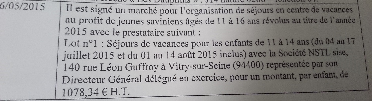 Vous êtes le maire de Savigny-sur-Orge et vous devez choisir entre envoyer les enfants de votre ville en colonie de vacances municipale ou faire appel à un prestataire de service extérieur à votre commune. Sachant qu’envoyer un enfant à la Savinière (colonie municipale) coûte 96 € en moyenne par jour à votre commune, Éric MEHLHORN a-t-il raison de passer par la société NSTL pour des colonies de vacances cet été ?