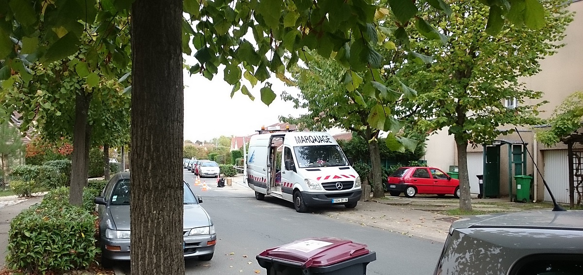 Un élément va cependant retenir mon attention : la plaque d’immatriculation en 14 (Calvados). Je vais alors sur Internet et je tape le nom de l’entreprise inscrit sur le camion : « Euro marquage signalisation« . Je découvre alors que le siège le plus proche est situé à Gambais (333 Avenue de Neuville) à 61 km de Savigny. Mais si nos ouvriers viennent du siège social de l’entreprise situé à Louvagny, comme l’indique leur camion, alors ils ont parcouru 261 km pour venir…