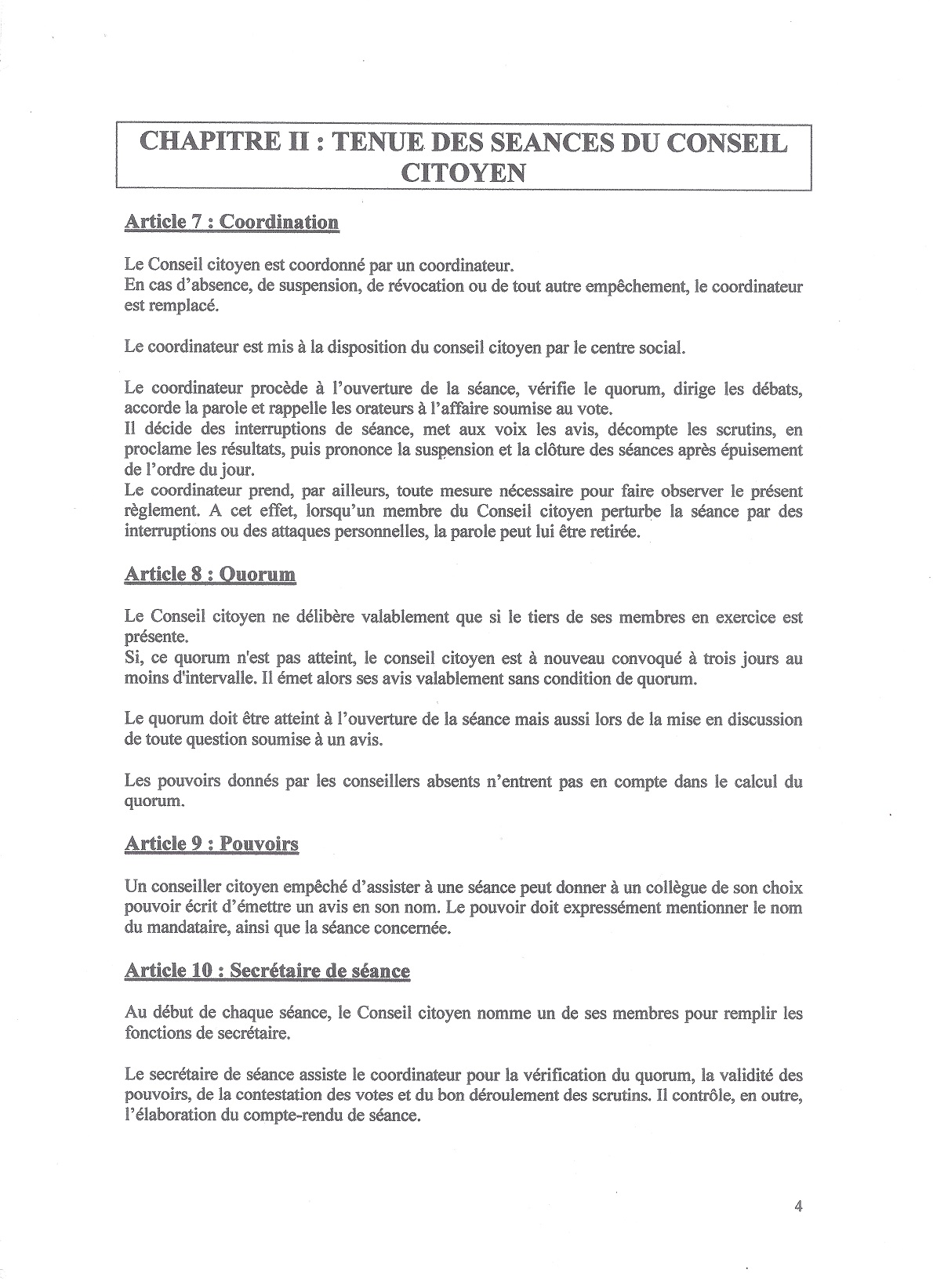 L’article 4 du chapitre Ier du règlement intérieur du Conseil citoyen de Grand-Vaux, intitulé « Accès aux dossiers », dit que « Toute personne physique ou morale a le droit de consulter sur place les dossiers du conseil citoyen ».