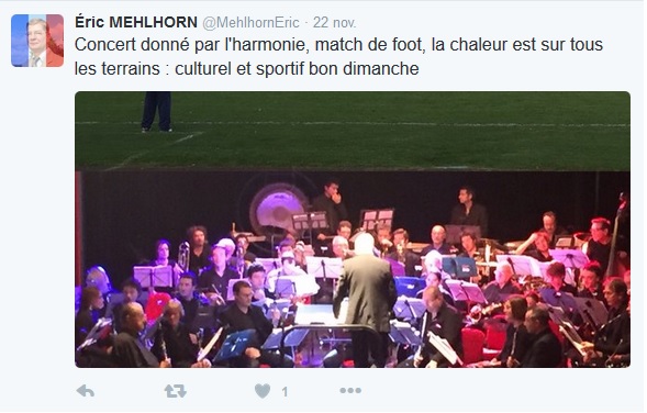 Désormais, lorsqu’il y a un concert à la salle des fêtes, Éric MEHLHORN se planque au fond de la salle, histoire d’être dans les derniers touchés par les balles des terroristes. Pour preuve, cette photo qu’il a prise du haut de la salle et qu’il publie sur Twitter. Mais tout va bien, la Police municipale fouille les sacs à l’entrée, donc cela n’arrivera pas. Et puis un concert familial qui touche l’électorat de MEHLHORN, il ne faudrait surtout pas abuser en l’annulant !