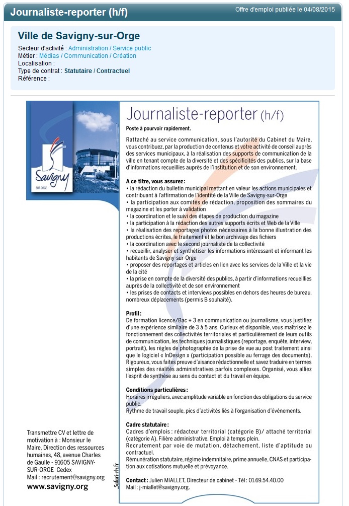 En effet, depuis le 04 août 2015, soit la parution du dernier bulletin municipal (comme si la personne en poste jusque-là avait claqué la porte ou été mise dehors), la Ville recherchait un journaliste/reporter pour écrire sa communication : « Nous faisons des choses, mais vous ne les voyez pas parce qu’on ne sait pas communiquer. C’est pas qu’on est incompétent, mais c’est comme le Gouvernement, on ne sait pas vous expliquer que ce qu’on fait est plein de bon sens... »
