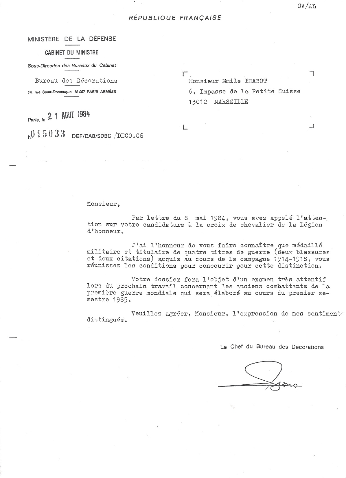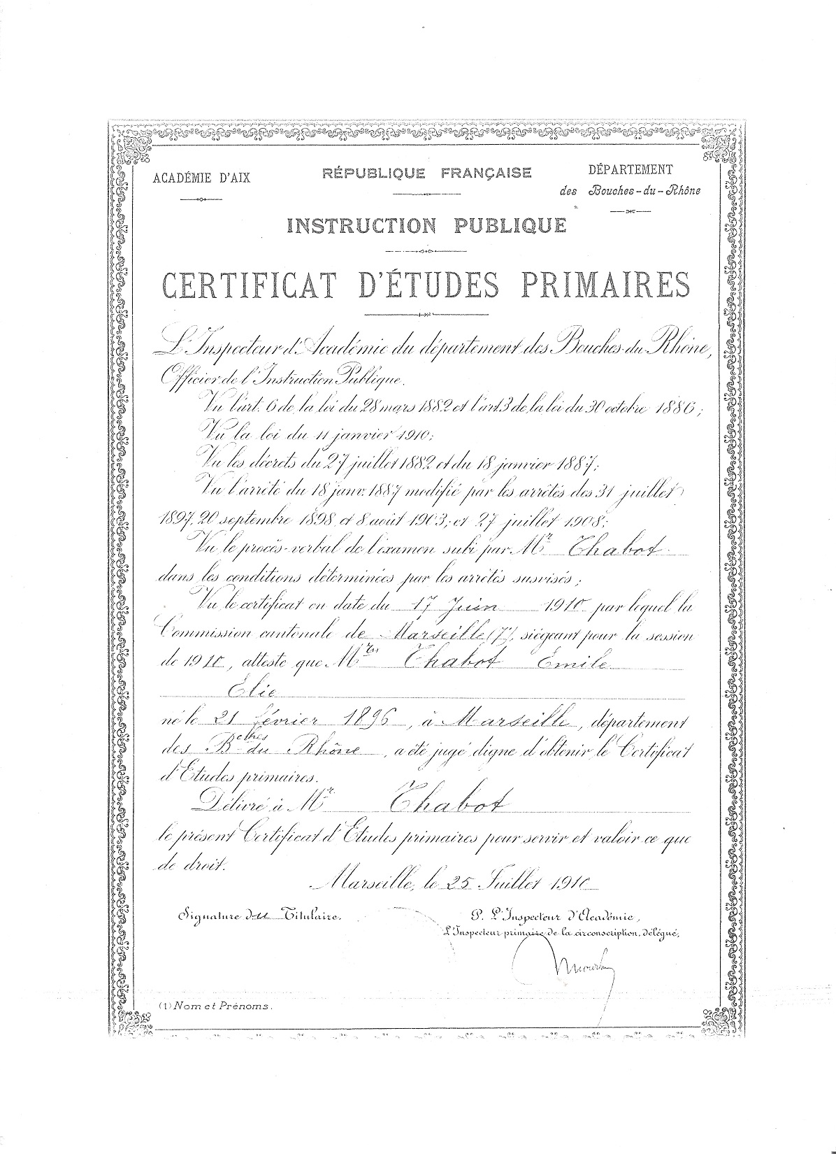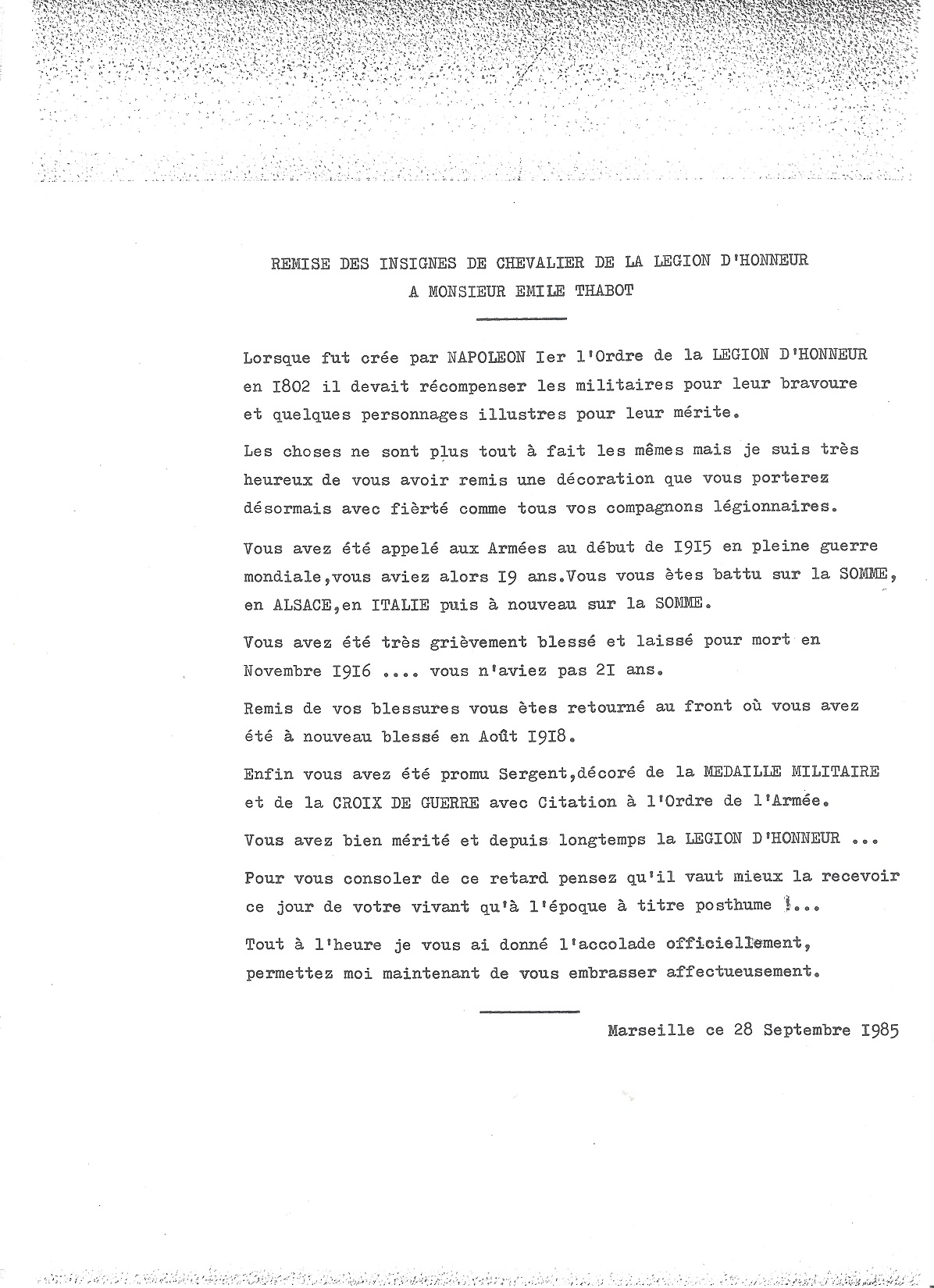 Je trouve que les Français n’entretiennent pas assez leurs mémoires familiales. Aussi, dans le contexte des différentes commémorations de la guerre de 1914-1918, j’ai décidé de m’intéresser plus à mes arrière grands-pères qui ont combattu pour la France. Voilà ce que j’ai trouvé concernant un arrière grand-père maternel Émile THABOT.
