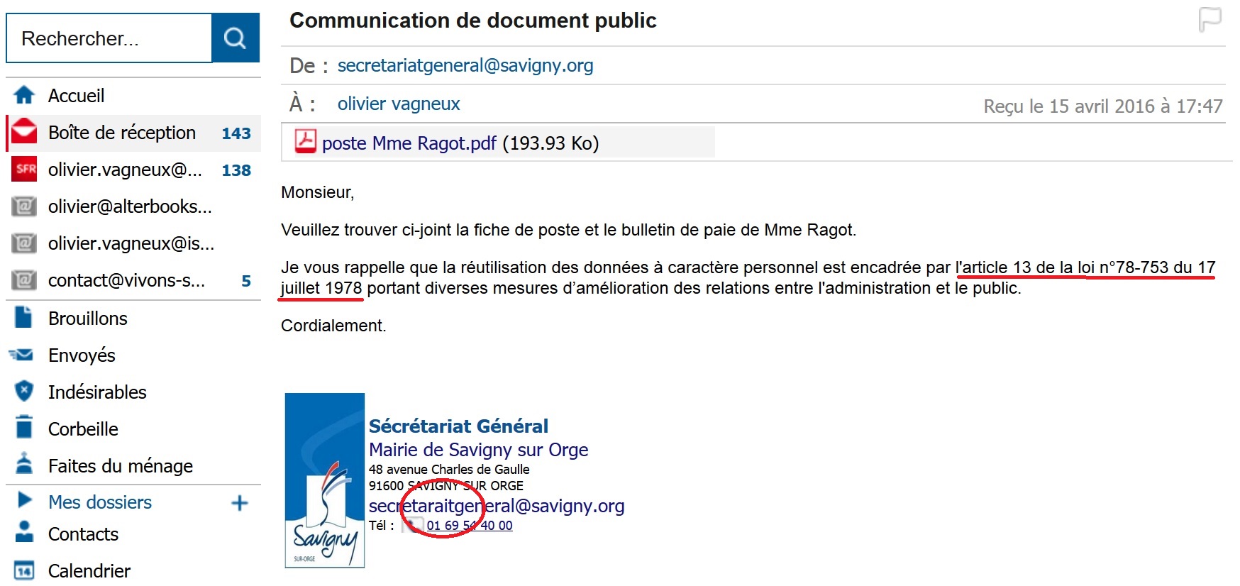 Qui est Stéphane DAVIN ? Le fonctionnaire responsable du Domaine des Affaires générales (le terme de Domaine signifie que cela se veut plus important qu’un service et qu’en plus, on est proche du Cabinet du maire) et la personne responsable de l’accès aux documents administratifs (PRADA) à Savigny. Bref, quelqu’un dont je suis devenu la bête noire à cause de mes demandes citoyennes. Mais dans quelle République vit-on ?
