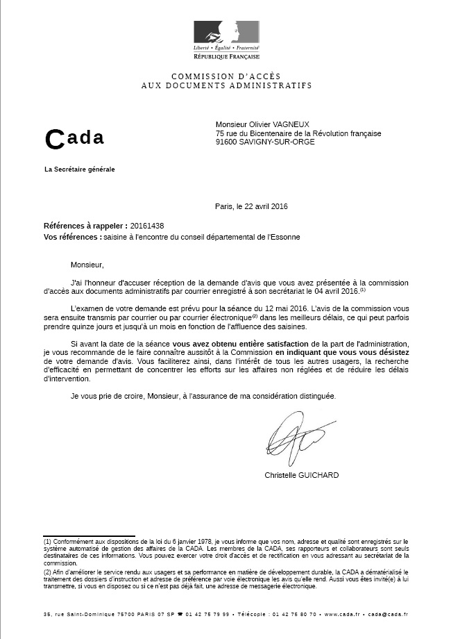 Fin février 2016, la Rumeur de l’embauche de Conseillers municipaux comme chargés de mission au Conseil départemental de l’Essonne parvenait à mes oreilles. Souhaitant vérifier la réalité des faits, j’eus alors l’idée de demander à François DUROVRAY, président du Conseil départemental qu’il m’envoie les fiches de poste et les bulletins de salaire. Or, il n’a pas voulu et ne l’a toujours pas fait…