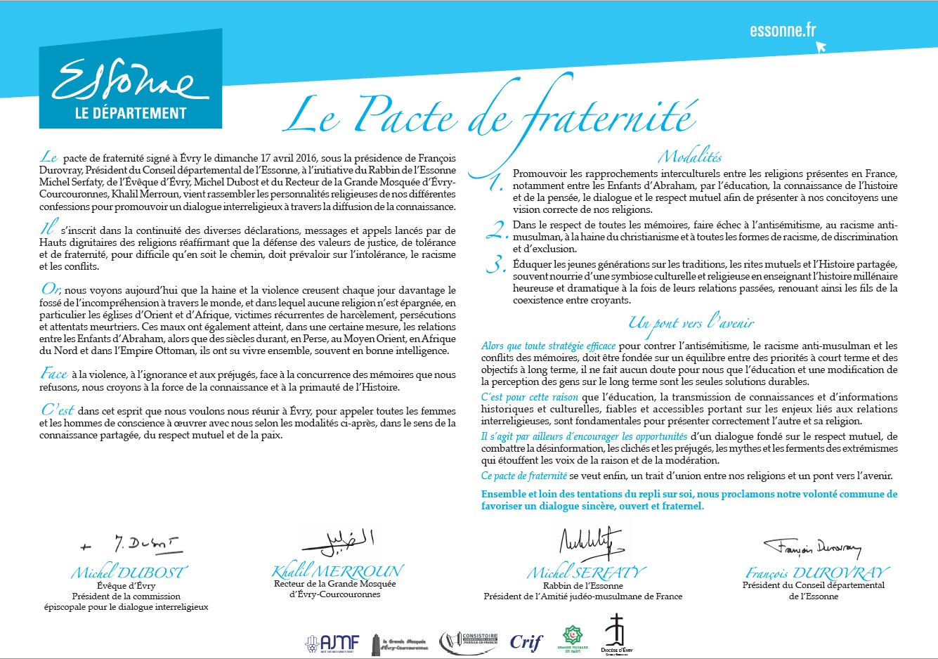 Un pacte de fraternité signé par les principaux monothéismes essonniens