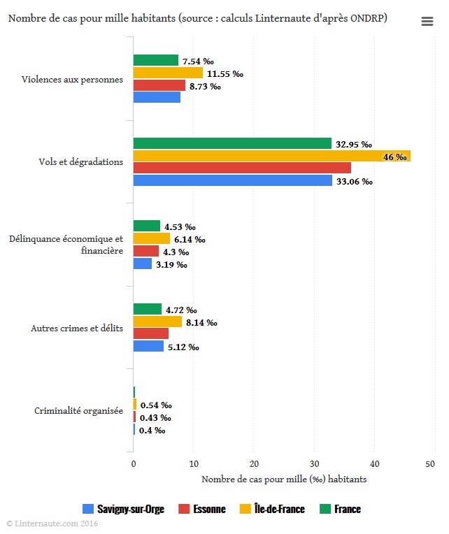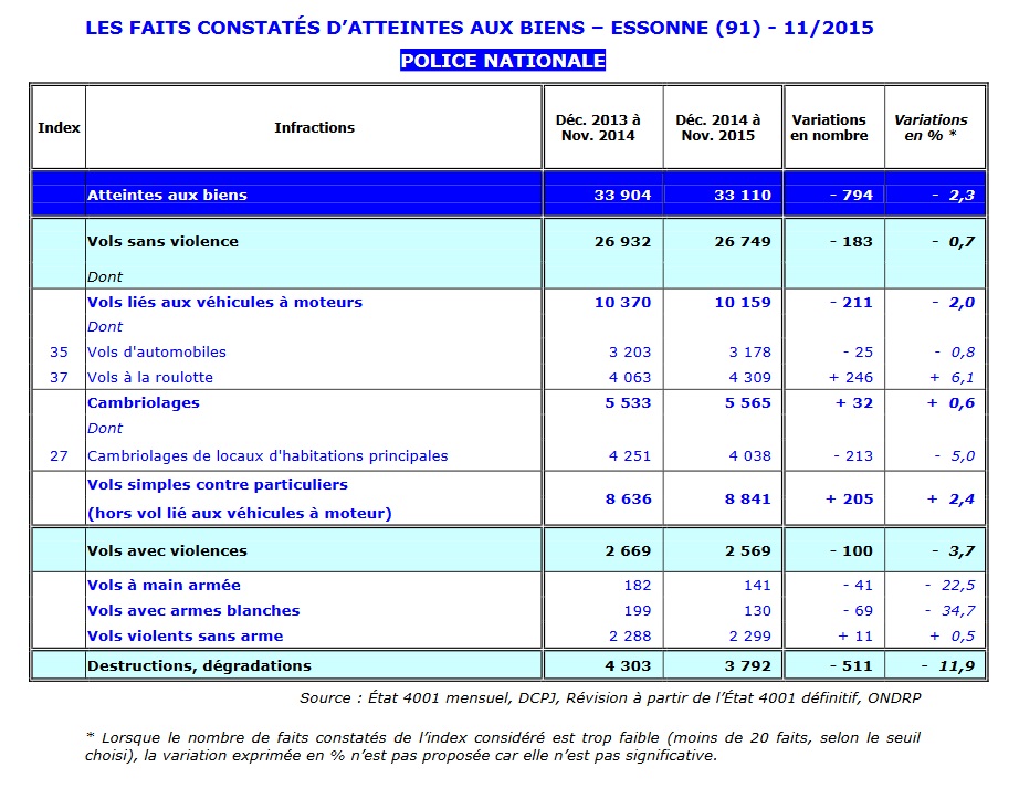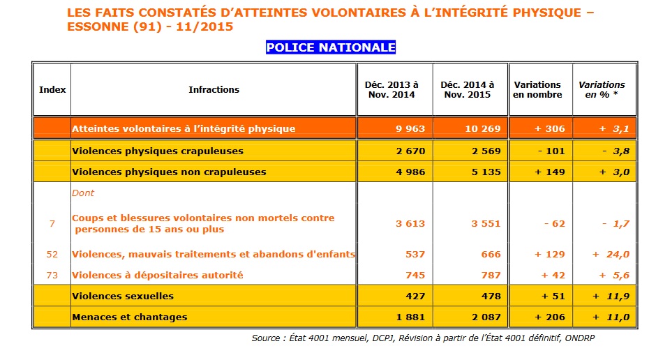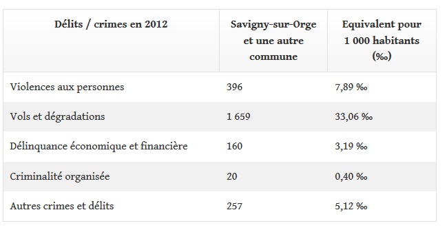 Les statistiques 2014 des actes de délinquance, délits et crimes commis sur les villes de Savigny-sur-Orge, et de Morangis (le nombre commis et le pourcentage représentatif)