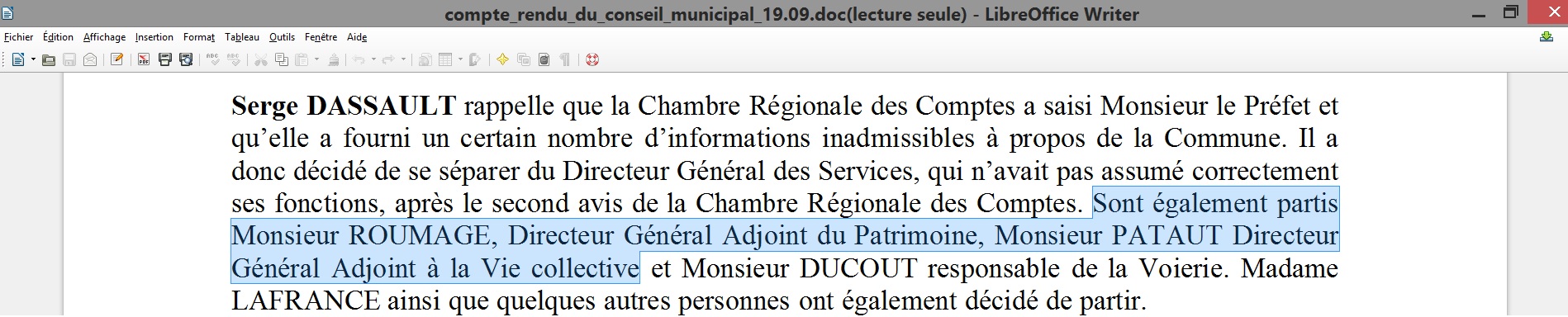- mensonges au Conseil municipal