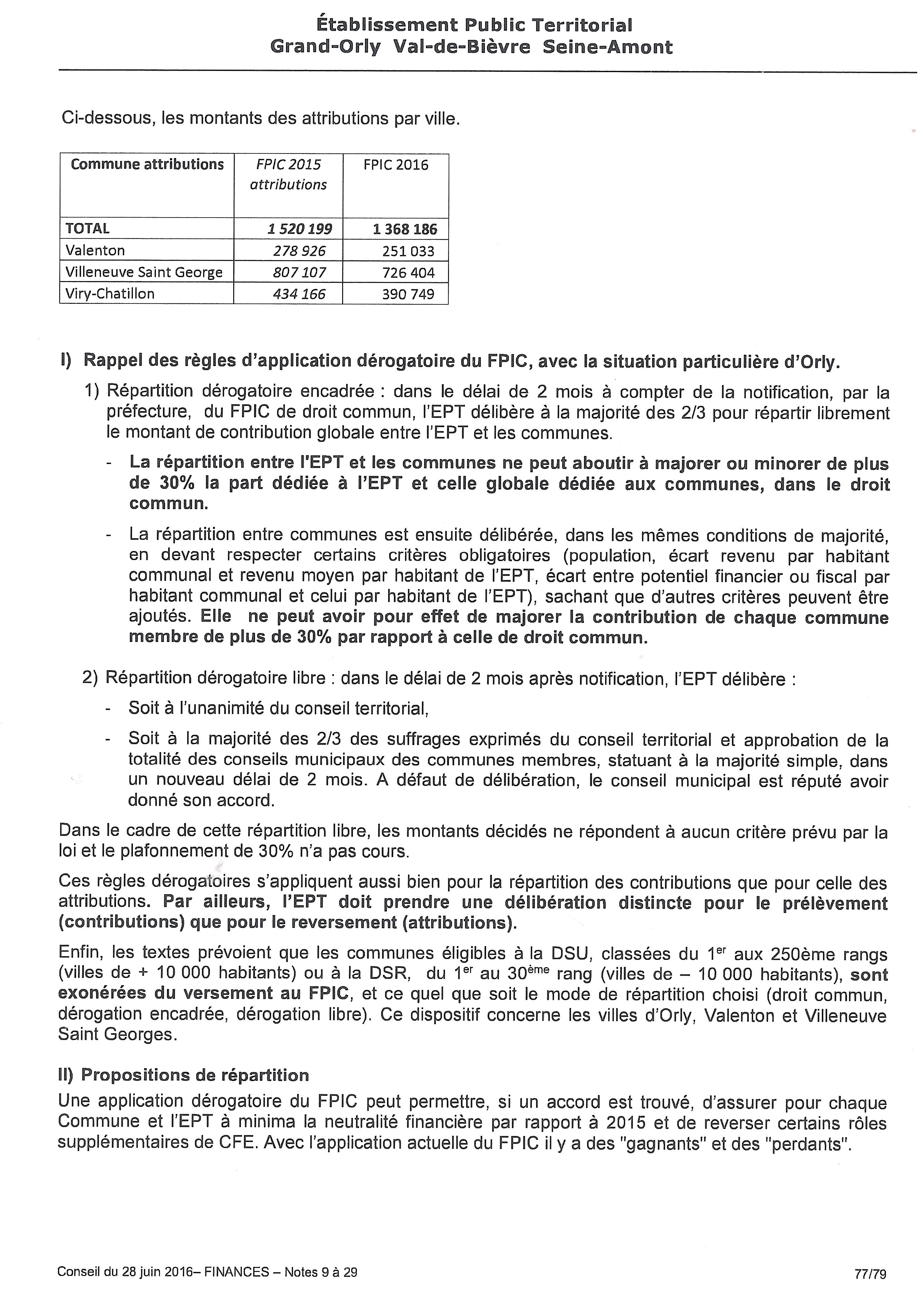Pour 2016, les critères d’attribution du Fonds de péréquation intercommunale et communale (FPIC), décidés par les services de l’État représenté par la Préfecture du Val-de-Marne, étaient plus injustes par rapport à la répartition de 2015. Ils pénalisaient plus certaines communes pauvres comme Valenton ou Villeneuve-saint-Georges tandis que des communes plus aisées voyaient leur niveau de contribution fortement diminuer par rapport à 2015.