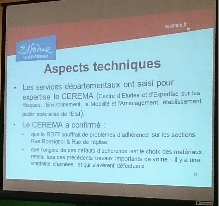 - Pourquoi ne refait-on pas toute la RD 77 si c’est un défaut de matériau ? N’a-t-il été appliqué qu’en certains endroits ? C’est étonnant.