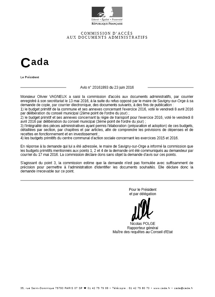 En effet, lorsque vous vous trouvez avec un budget communal qui ne contient que des chiffres, en face de titres de chapitres aux noms pas forcément plus compréhensibles, vous pouvez toujours tenter, comme je l’ai fait, de demander les pièces administratives communicables ayant permis d’aboutir au vote du budget. Et puis saisir la CADA devant le refus tacite d’une mairie qui aurait concrètement des milliers de pièces à communiquer.