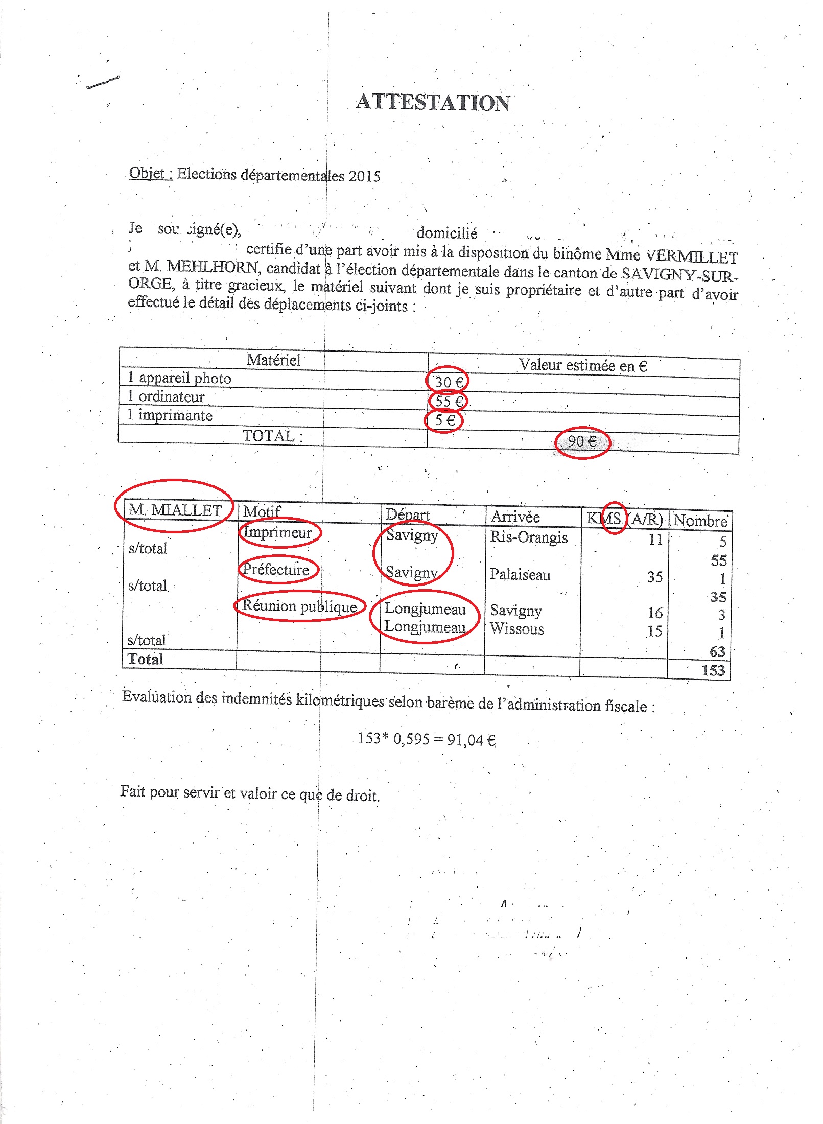 Contacté par notre rédaction, Julien MILLAET n’a pas souhaité répondre à nos questions, et ainsi dissiper nos doutes. Tout de même, ça me ferait mal qu’on lui ait remboursé 91,04 € d’essence si à cette heure là, il était aussi payé par la mairie… En d’autres termes, je me demande si c’est un « abus de biens sociaux », mais je laisse le choix à mon « ami » Julien MIALLET le soin de donner des suites juridiques à cette affaire, s’il estime que je le diffame.