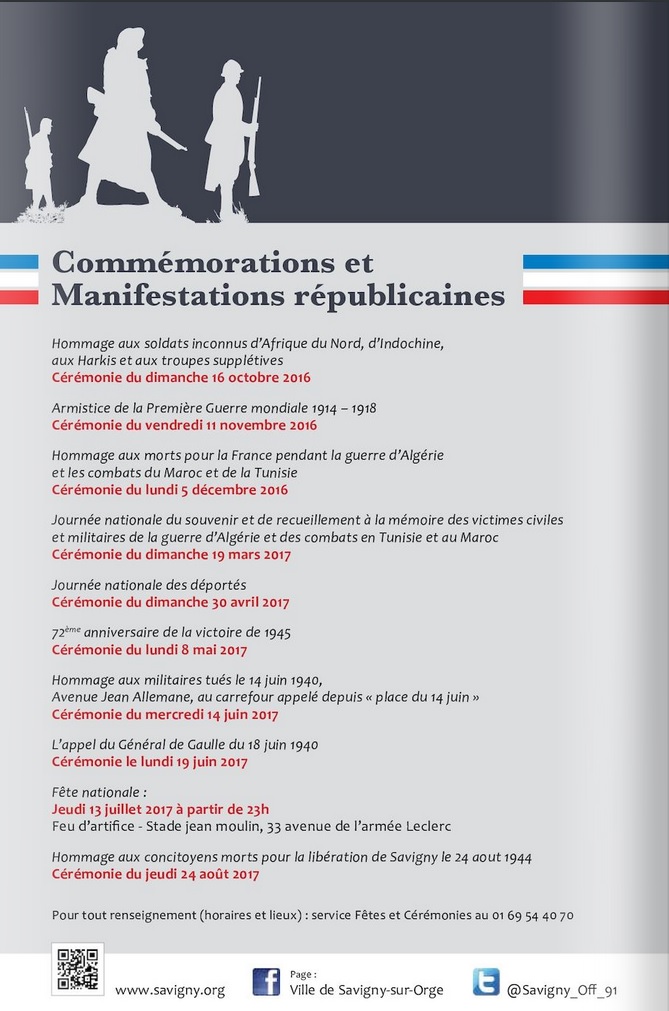 Chaque année, les maires sont invités, par une note du ministère de l’Intérieur, à commémorer 14 événements publics officiels. À Savigny-sur-Orge, seulement 7 commémorations sont organisées par le maire de la commune. Quels sont donc ces thèmes républicains qui sont oubliés, sinon quand même célébrés, sur demande de l’État alors que discutables. Nous nous sommes plongés dans le protocole officiel.