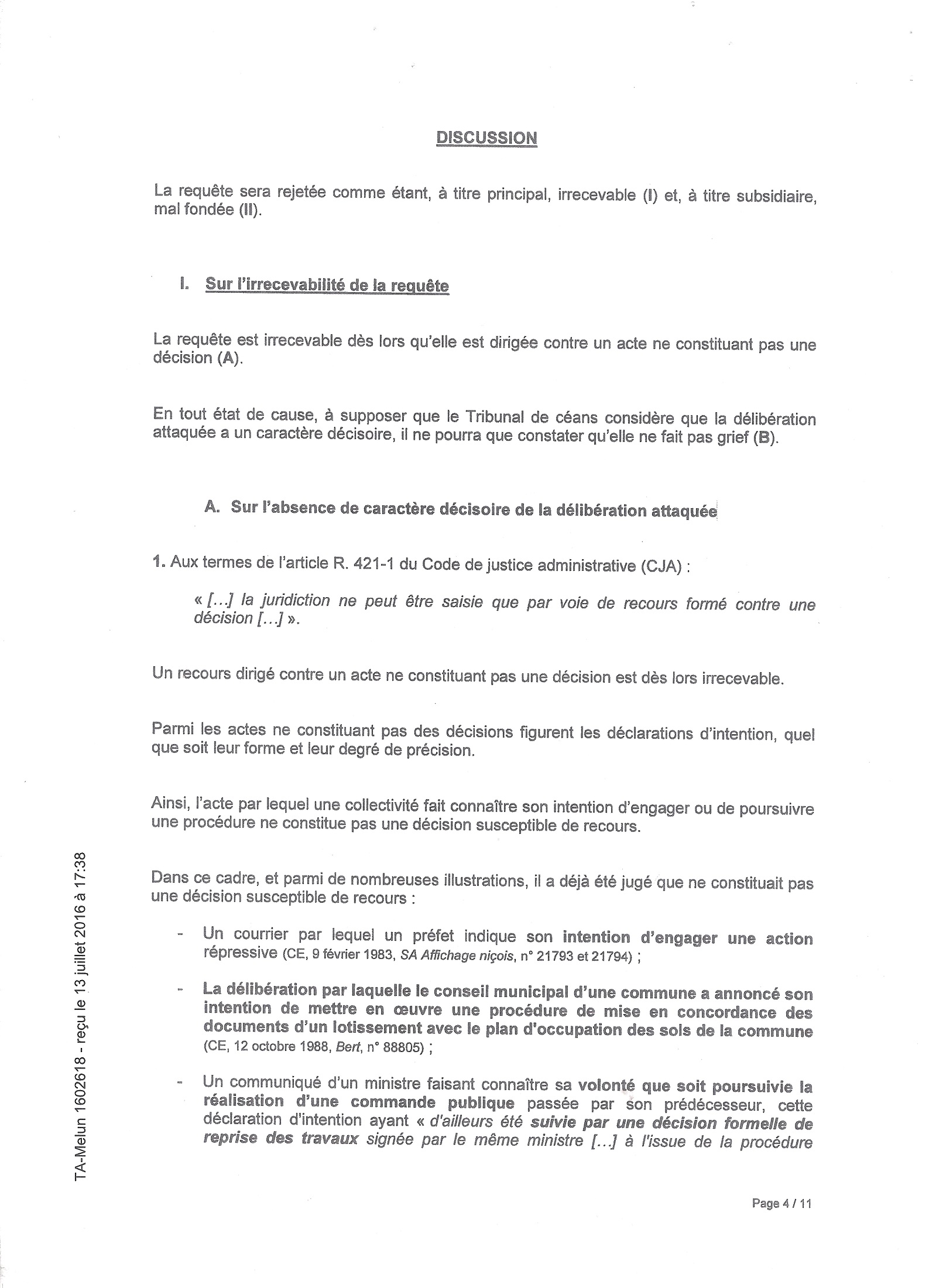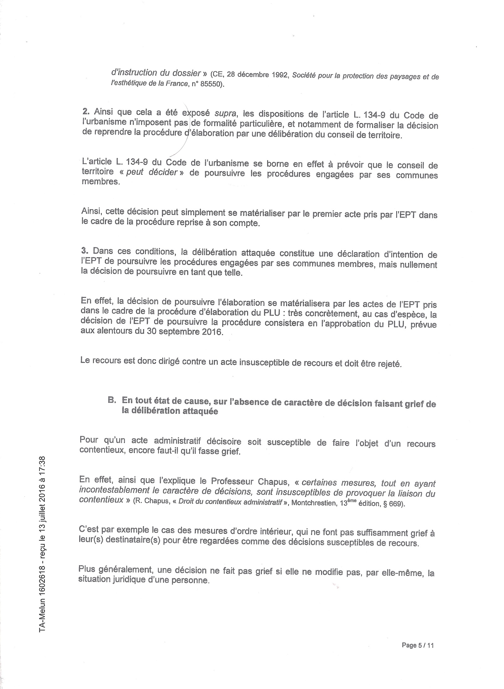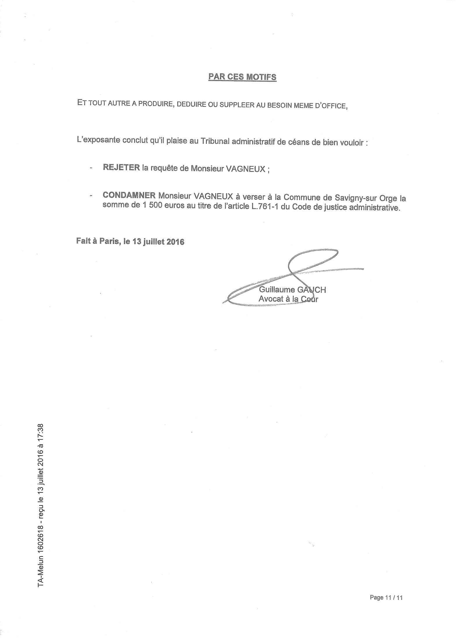 Toujours est-il que pour ne pas faire annuler deux actes administratifs municipaux, faisant perdre un peu de sa souveraineté à Savigny-sur-Orge, votés sur le fondement de la délibération de l’agglomération que j’attaque, la Ville va en défense. C’est du masochisme pur, mais il ne faudrait en effet pas reconnaître que le génial Conseil municipal de Savigny ait pu se tromper, ou ne pas respecter la Loi. Pensez donc, ce serait bien la première fois que cela arriverait…