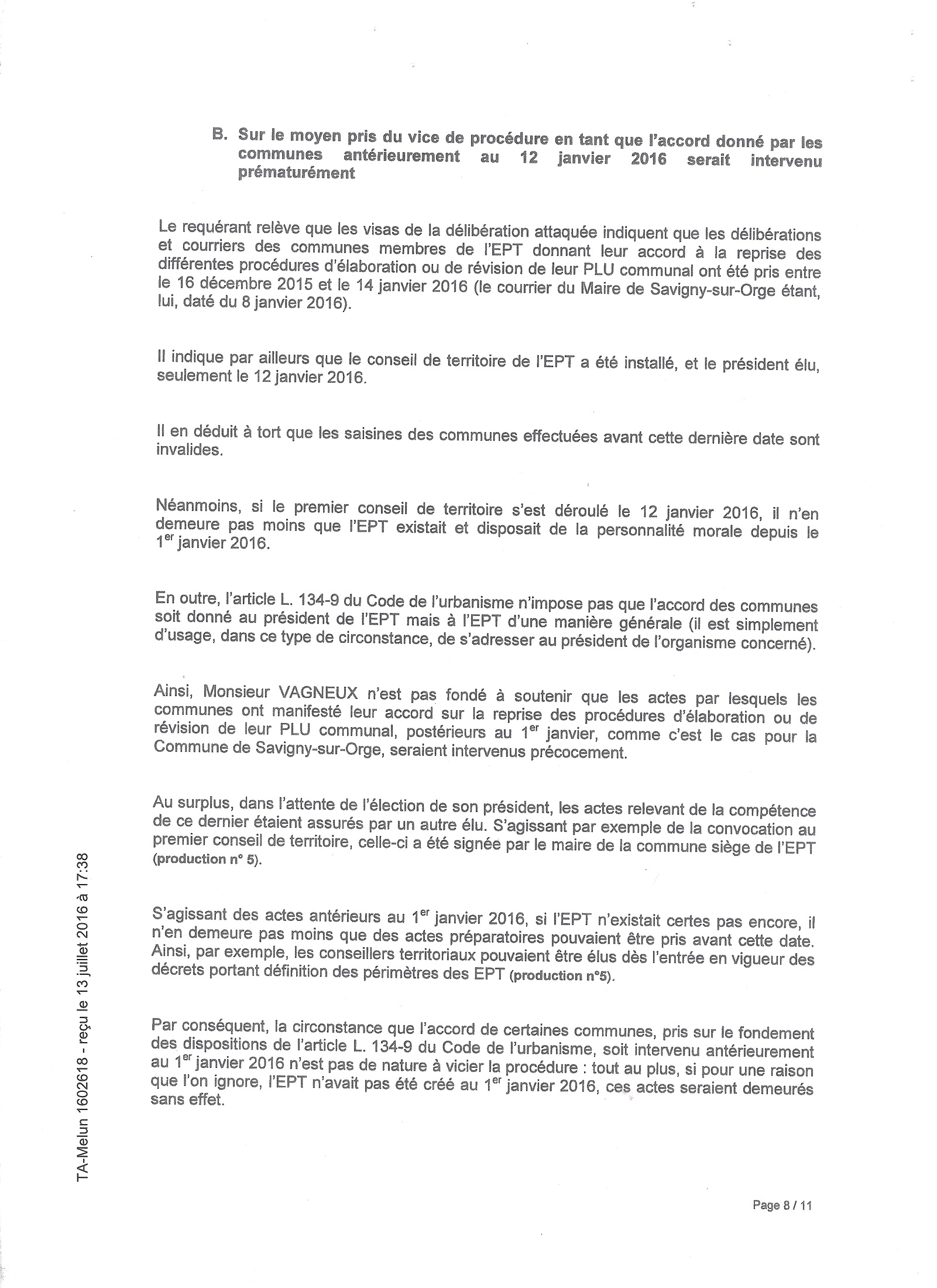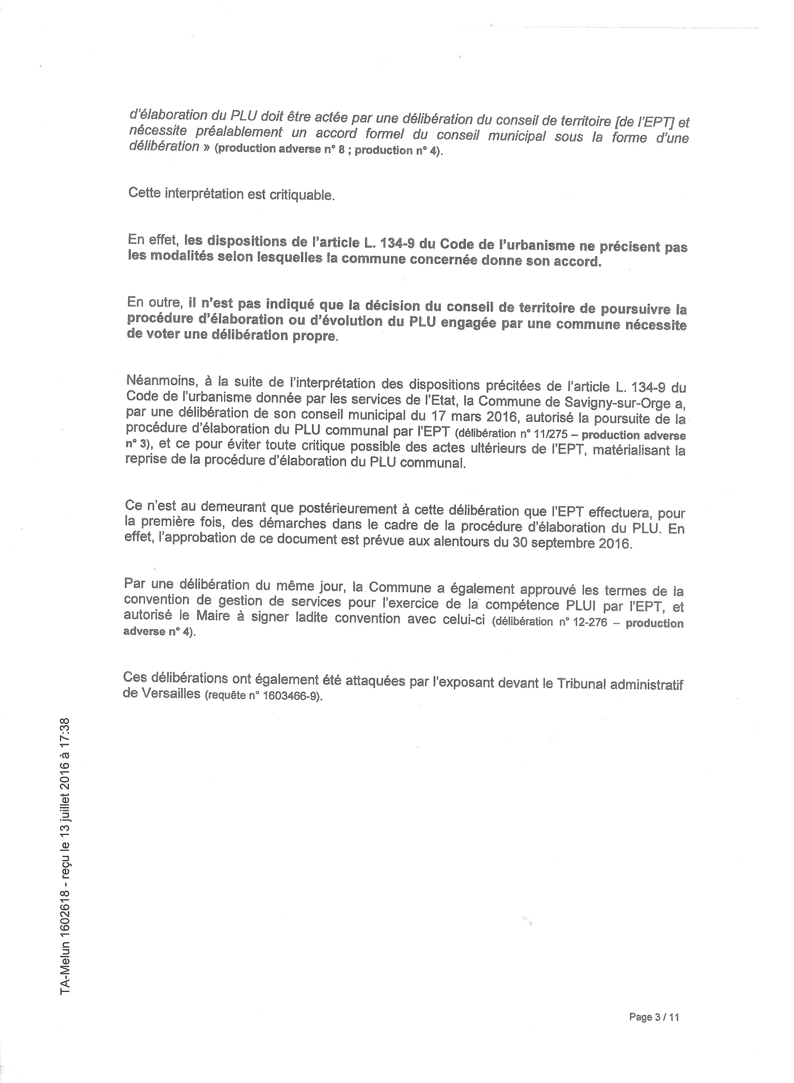 Le problème, c’est que ce faisant, elle prend le même avocat pour se défendre que celui de l’EPT 12, qui à peu de choses près, réécrit les mêmes arguments dans ce deuxième mémoire, par rapport au premier de l’EPT 12. Or, parce que leurs intérêts ne sont pas les mêmes, alors Savigny place leur avocat en situation de conflit d’intérêts… Au moins d’irrespect de sa déontologie, car il défend Savigny pour un intérêt qui va favorablement à l’EPT mais contre SSO.