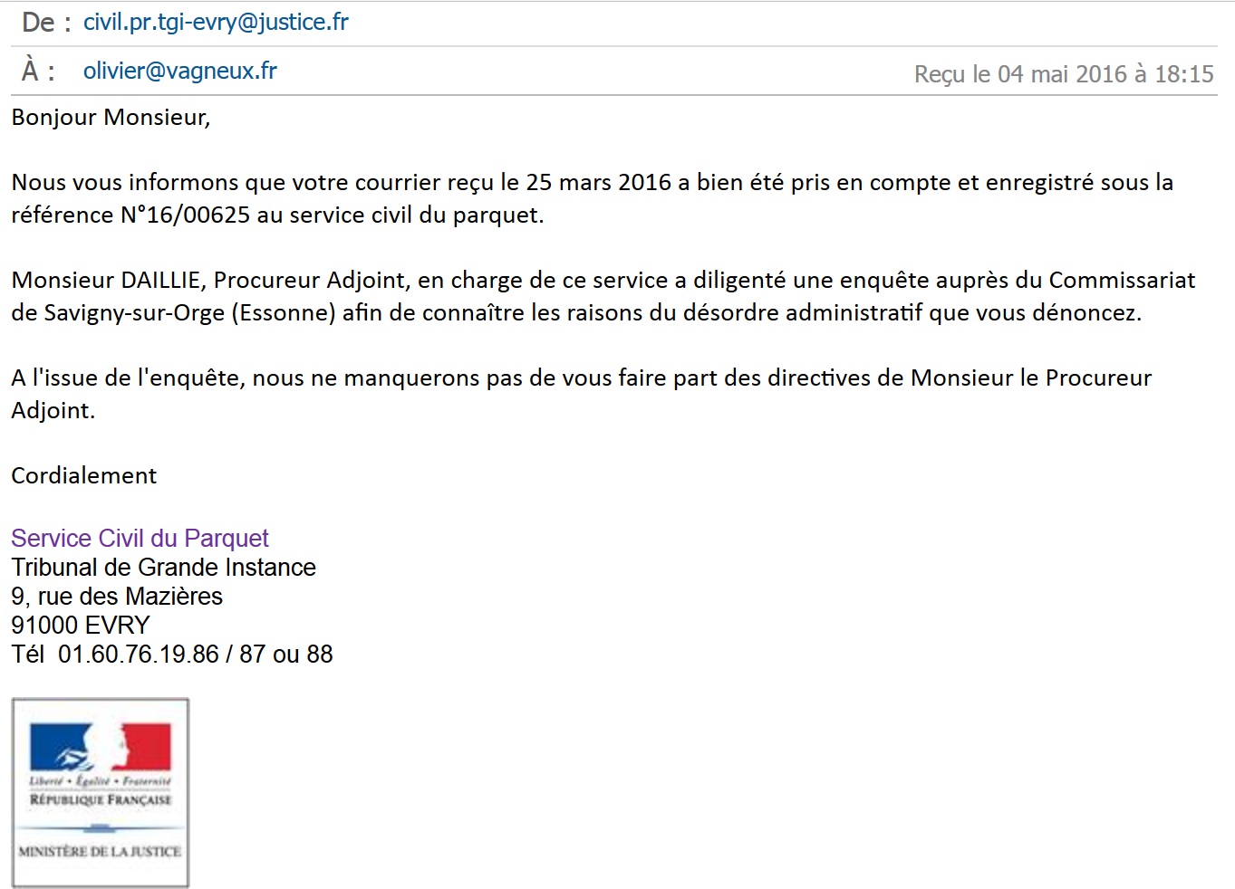 Aujourd’hui, à Savigny, le service public est intentionnellement empêché de fonctionner correctement, par exemple, en refusant la communication de documents publics, pour emmerder VAGNEUX, et aussi parce que ça doit faire bander la majorité municipale et le cabinet du maire. Puis ça occupe leurs journées. Il n’empêche que ces dysfonctionnements sont graves, et ont conduit le Procureur de la République à ouvrir une enquête administrative.