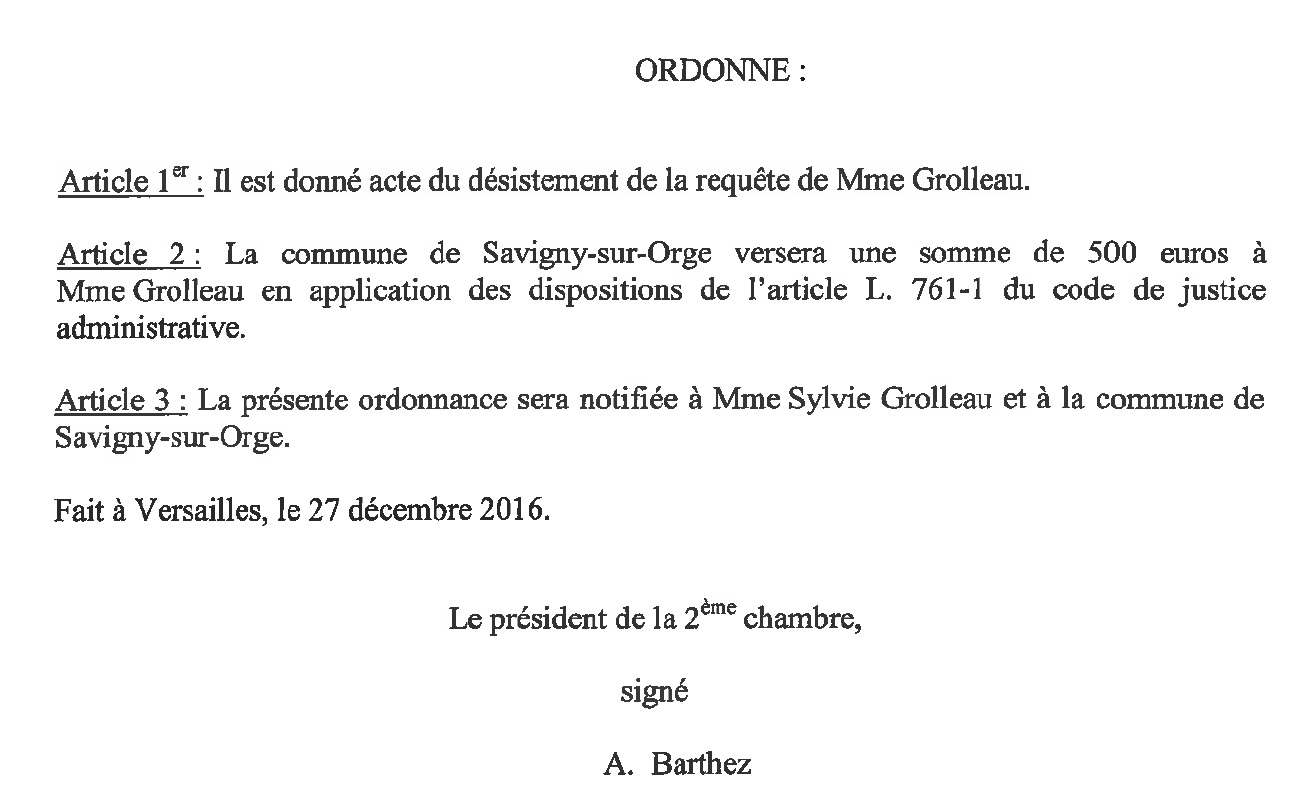 Le délai de deux mois pour faire appel étant expiré, et aucune nouvelle procédure n’ayant été initiée par la Ville à notre connaissance, la condamnation de la Ville est définitive. Le contribuable savinien a perdu 3000 € supplémentaires (plus les frais de justice pour son avocat) dans cette affaire parce que le maire de Savigny, n’assumant pas les conséquences financières des services qu’il a fermé, a essayé de trouver le moyen de ne plus avoir à payer ces agents… C’est malhonnête en plus d’être immoral.