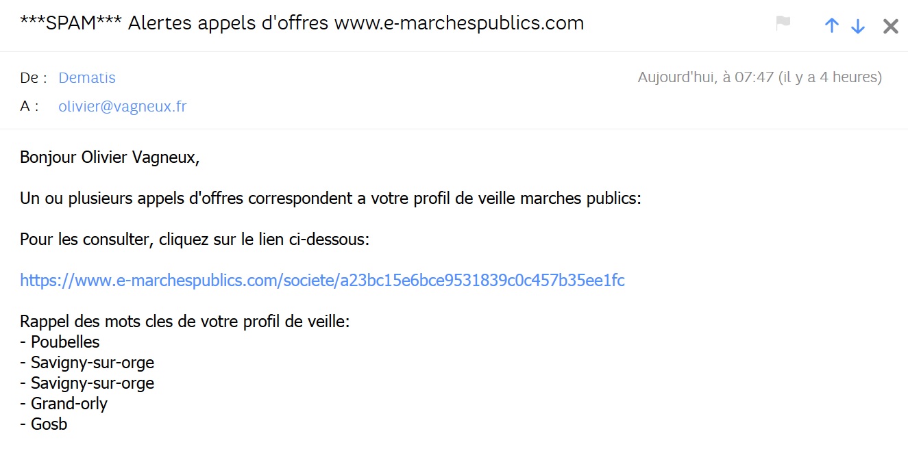 Je ne suis pas abonné aux marchés publics de la Ville QUE parce que je veux pointer du doigt tous les dysfonctionnements de l’administration mehlhornienne, ou parce que j’aspire à devenir maire de Savigny. Mais quand même un peu, et d’ailleurs, je me désabonnerai quand j’aurais perdu en 2020 et que MEHLHORN aura été largement réélu. Non, je le fais parce que je suis contribuable et que je veux savoir où passe mon argent. Mais 99 % des gens s’en foutent.