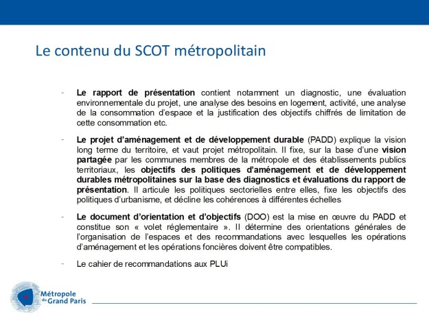 Comment résumer l’ambition du SCOT de la Métropole du Grand-Paris (MGP) ? Il devra rendre concret « la citoyenneté métropolitaine » ; si possible en réduisant les inégalités naturelles aux douze territoires composant la MGP.