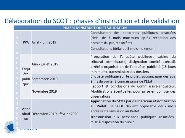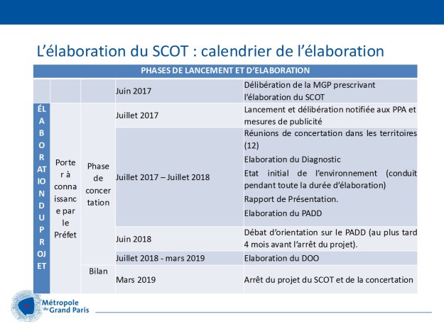 Et parce qu’il sera le SCOT le plus important de France à son échelle, et aussi parce que la métropole de Lyon (2 millions d’habitants) a mis 10 ans à faire le sien, alors la MGP ne possède rien de moins que l’ambition d’achever le sien en moins de trois ans, soit avant les élections municipales de mars 2020 !