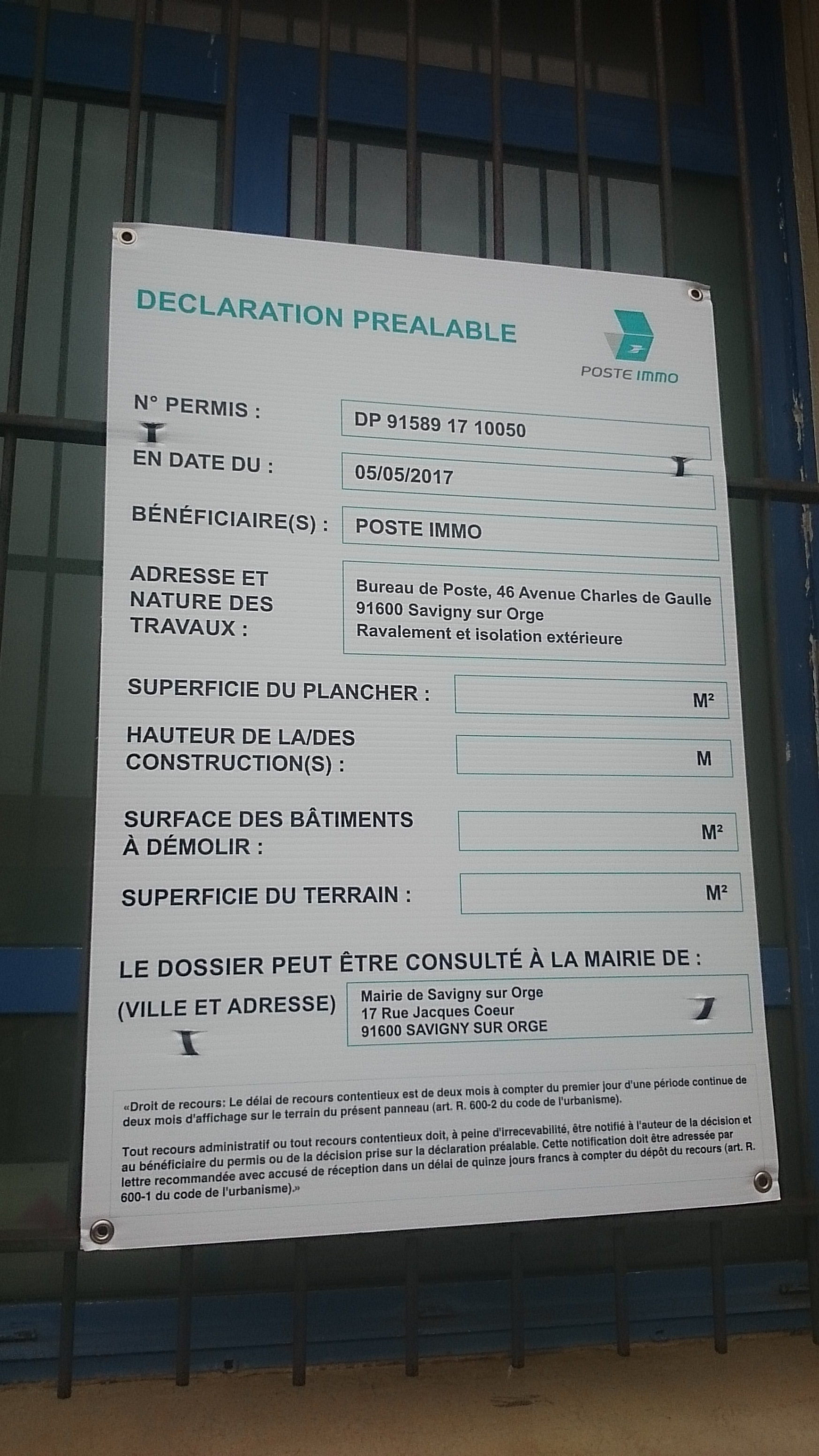 À Savigny-sur-Orge, on est parano donc on veut fliquer les travaux des Saviniens au moyen de déclarations préalables. Mais de là à aller vérifier ce que les propriétaires inscrivent sur les panneaux de déclaration, on ne va pas trop pousser le zèle. Pauvre Nadège ACHTERGAËLE, adjointe aux Travaux, qui photographie régulièrement les dossiers des Saviniens pour faire croire qu’elle travaille mais qui est complètement dépassée…