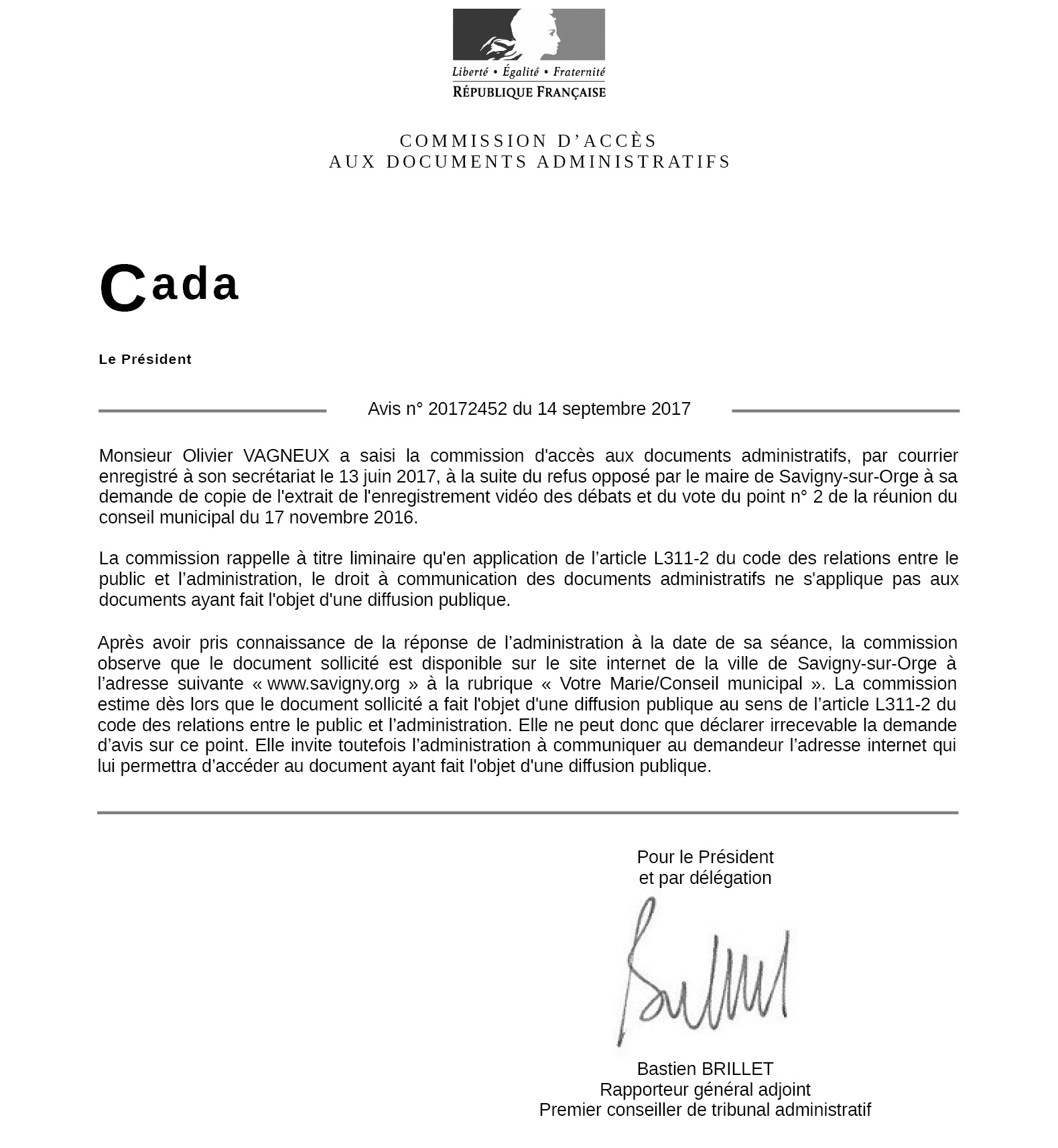 J’ai alors saisi la Commission d’accès aux documents administratifs (CADA), en leur fournissant le courrier du Tribunal administratif, et finalement cette dernière envoie à son tour, et au travers de moi, le TA se faire voir, en lui disant que le lien lui suffit…