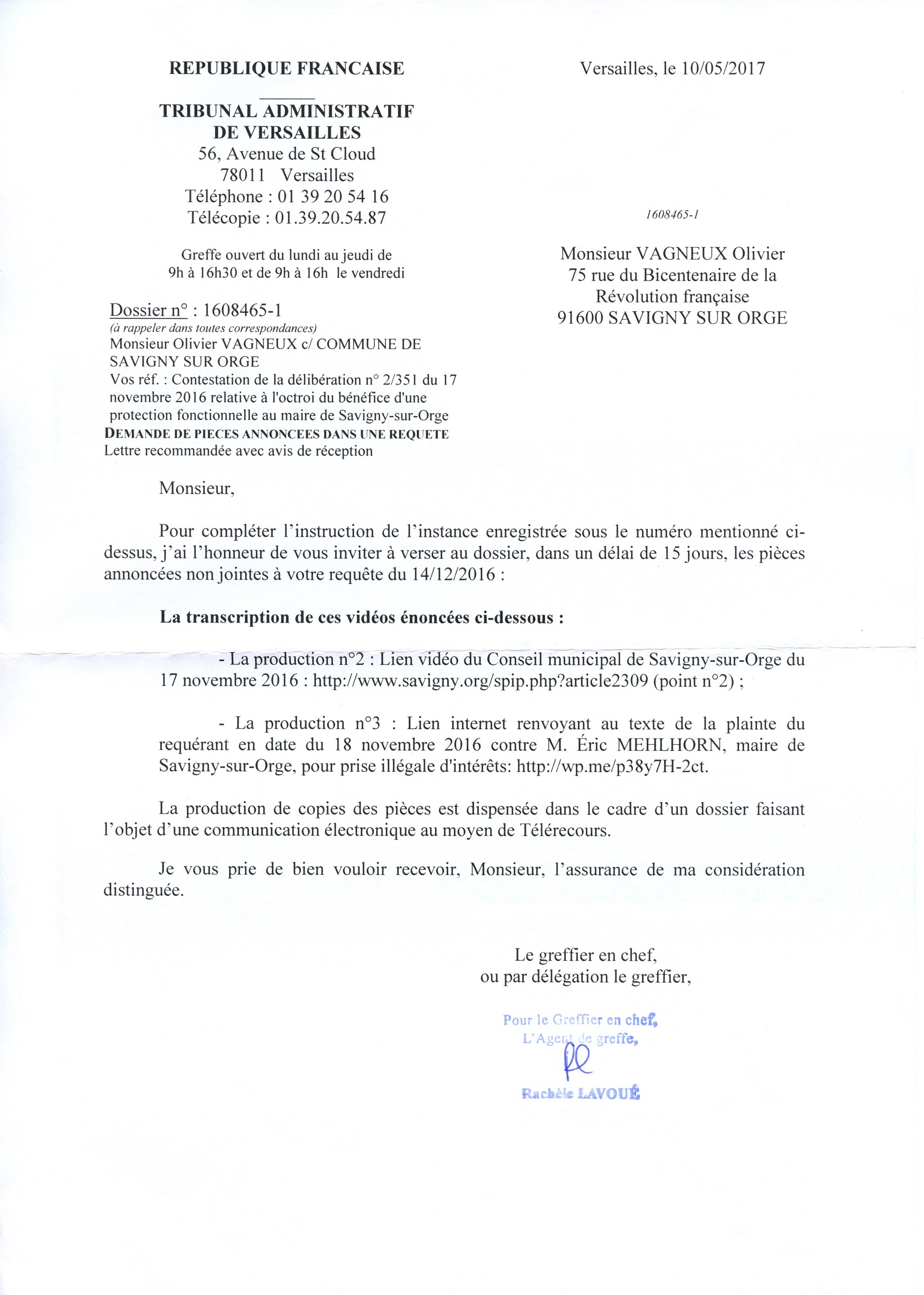 Sauf que le Tribunal administratif, dans certains cas, n’accepte pas les liens internet mais veut des documents matérialisés. En l’occurrence, dans l’affaire que je prends en exemple.