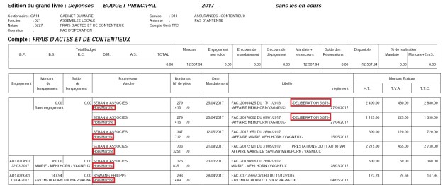 Notons en plus que tout ce que j’écris sur ces frais n’est pas tout à fait vrai, car toutes ces dépenses sont hors marché. Donc on donne en plus quelque chose comme 15 000 € annuels à un cabinet d’avocats, juste pour qu’il soit disposé et disponible pour régler les affaires juridiques de la commune…