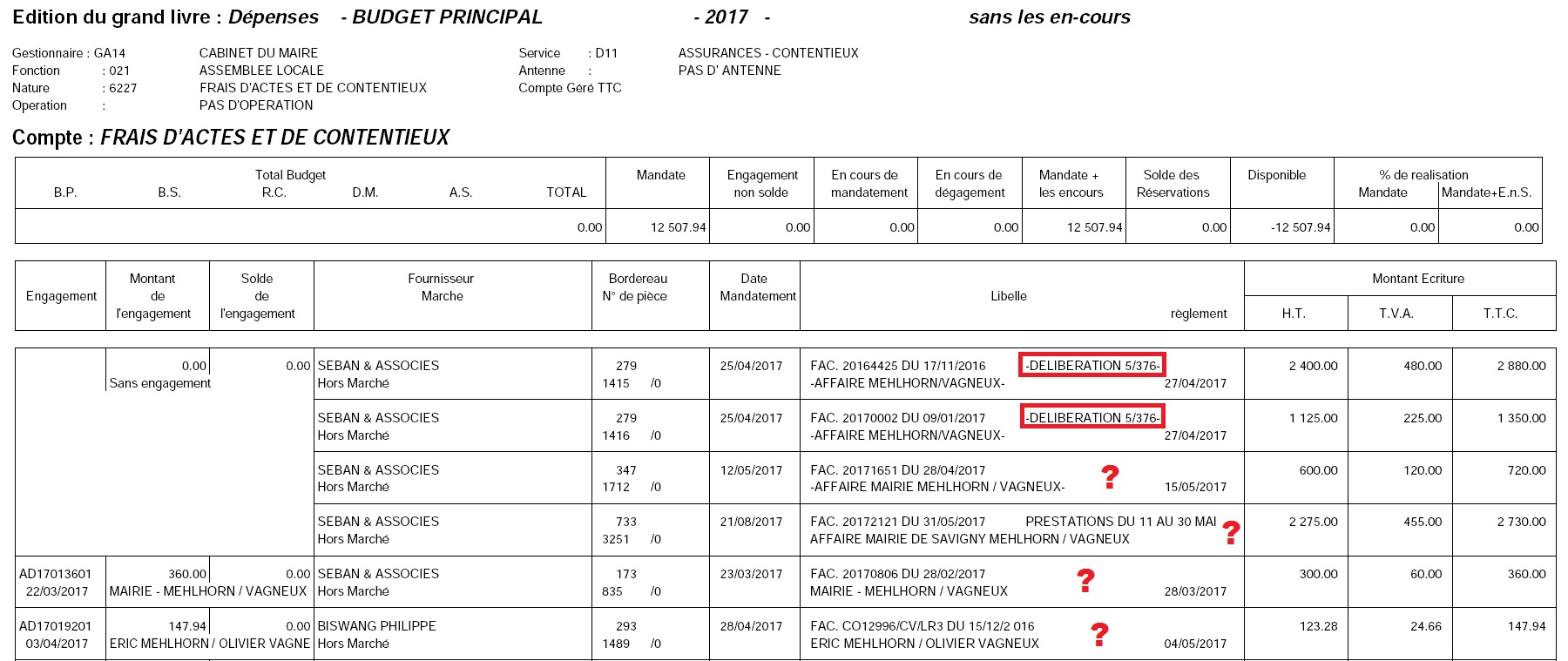 Il y a beaucoup trop d’éléments qui ne sont pas clairs dans cette histoire, et trop d’argent dont on ne sait pas où il va, ni à quel titre. Qu’est-ce que la Ville a pu payer pour 1080 € de conseil d’avocat après l’affichage de messages jugés diffamants ? Six heures de travail pour quoi faire ? Six heures pour dire à MEHLHORN de se défendre, et de demander une protection fonctionnelle ? Les avocats du cabinet SEBAN sont-ils champion du monde ?