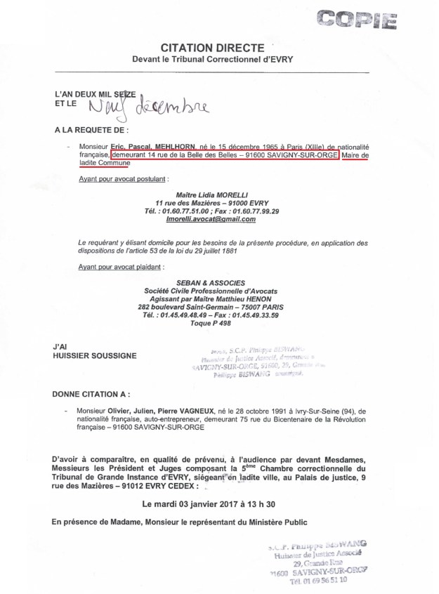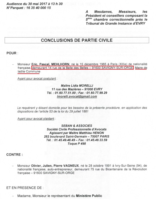 Premier problème : Éric MEHLHORN m’a attaqué, en tant que maire, mais de chez lui !