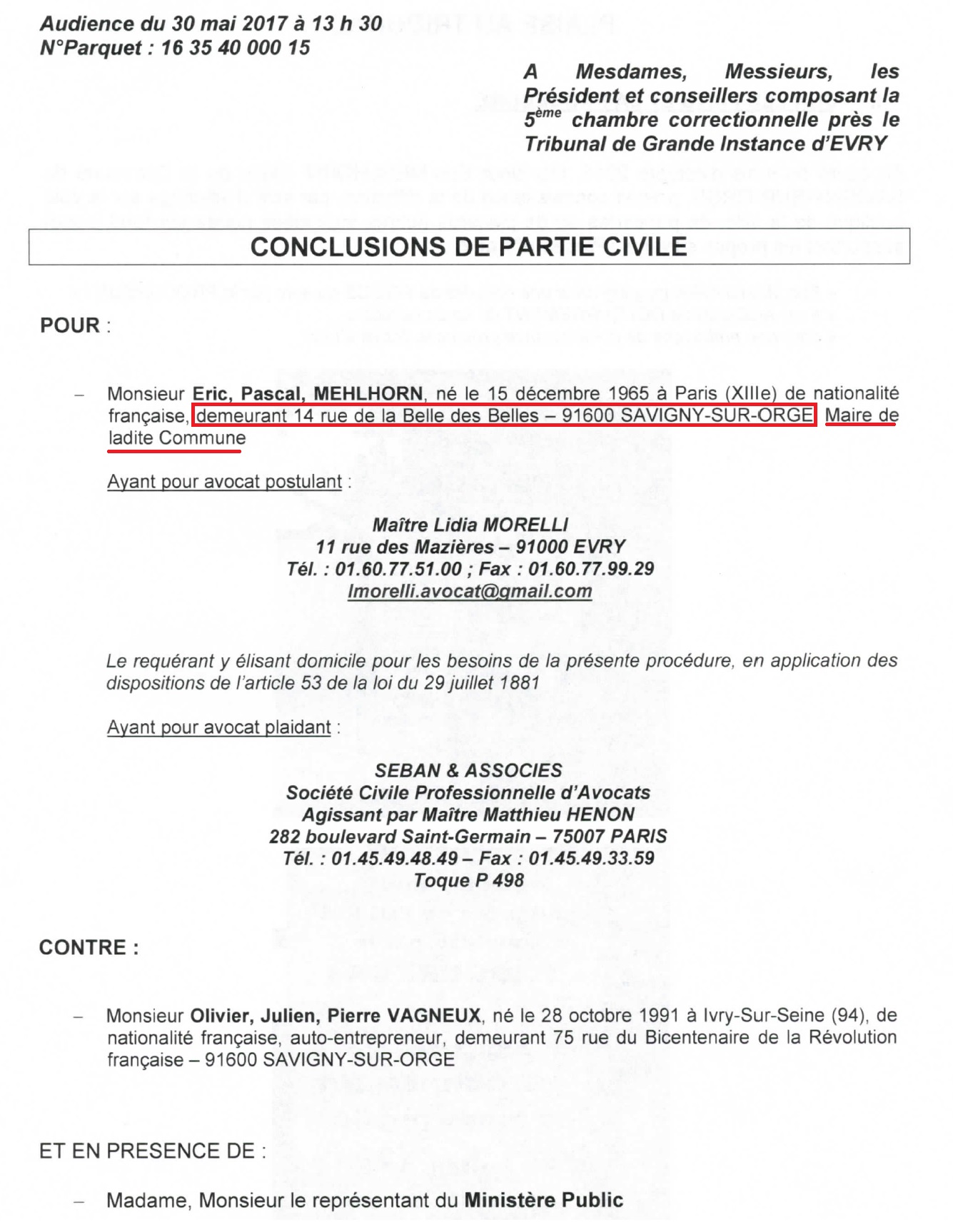 Il entretient donc volontairement une confusion entre une personne physique (MEHLHORN domicilié chez lui) et une personne morale (le maire de Savigny).