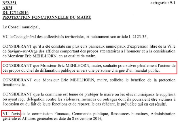 Afin de se défendre en tant que maire, il a donc sollicité l’octroi d’une protection fonctionnelle (en gros, que la mairie lui paye ses frais de Justice).