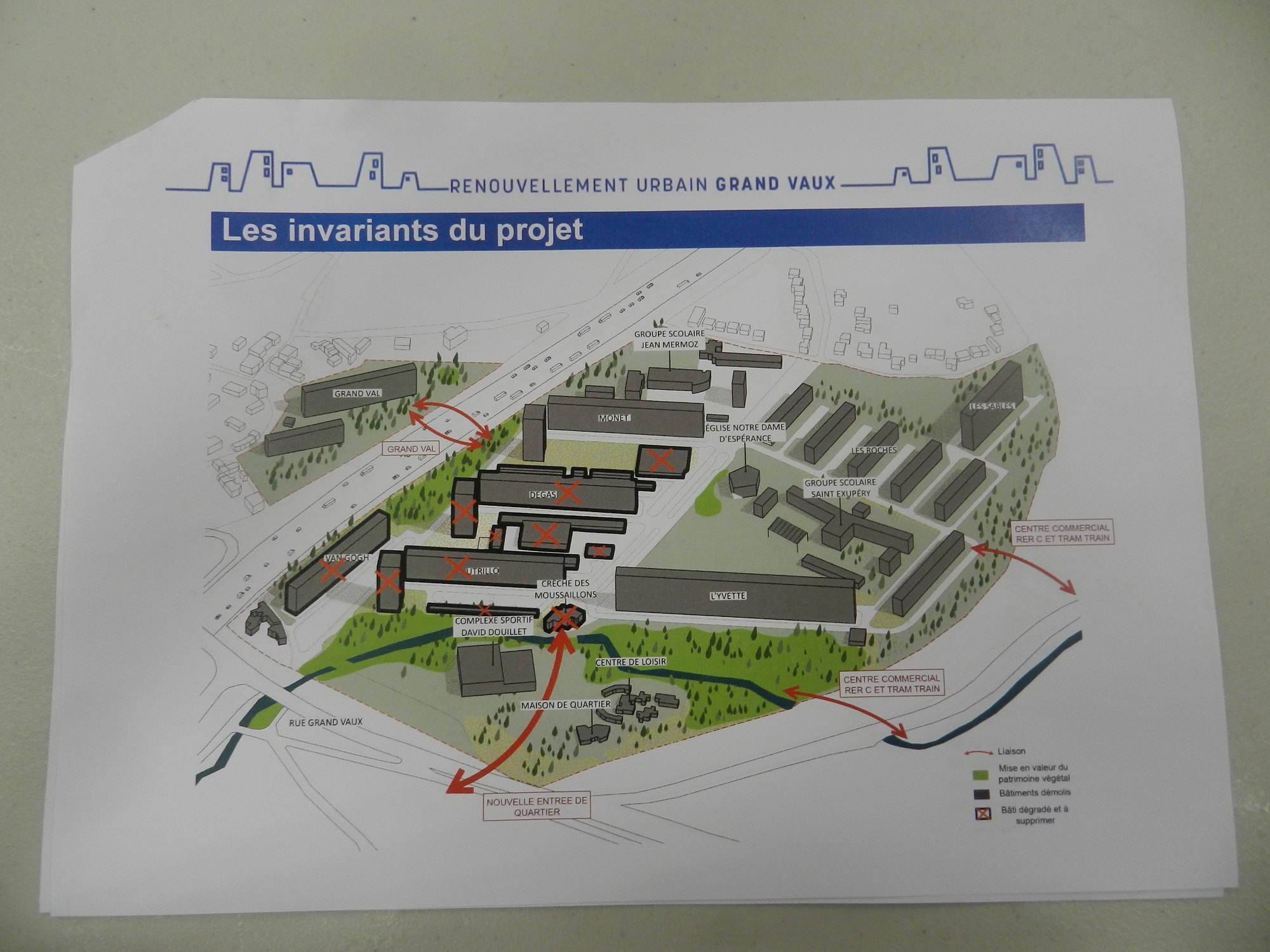 Ce mercredi 06 décembre 2017, il y avait un atelier dit « participatif » pour travailler sur les scenarii proposés dans le cadre de la rénovation urbaine de Grand-Vaux. Sauf que de participation, on a d’abord commencé par nous dire qu’il y avait des « invariants » non négociables sur lesquels on ne pouvait pas être concertés. Et que ces invariants ont en plus été décidés arbitrairement par la Ville (enfin le cabinet du maire) et le bailleur.