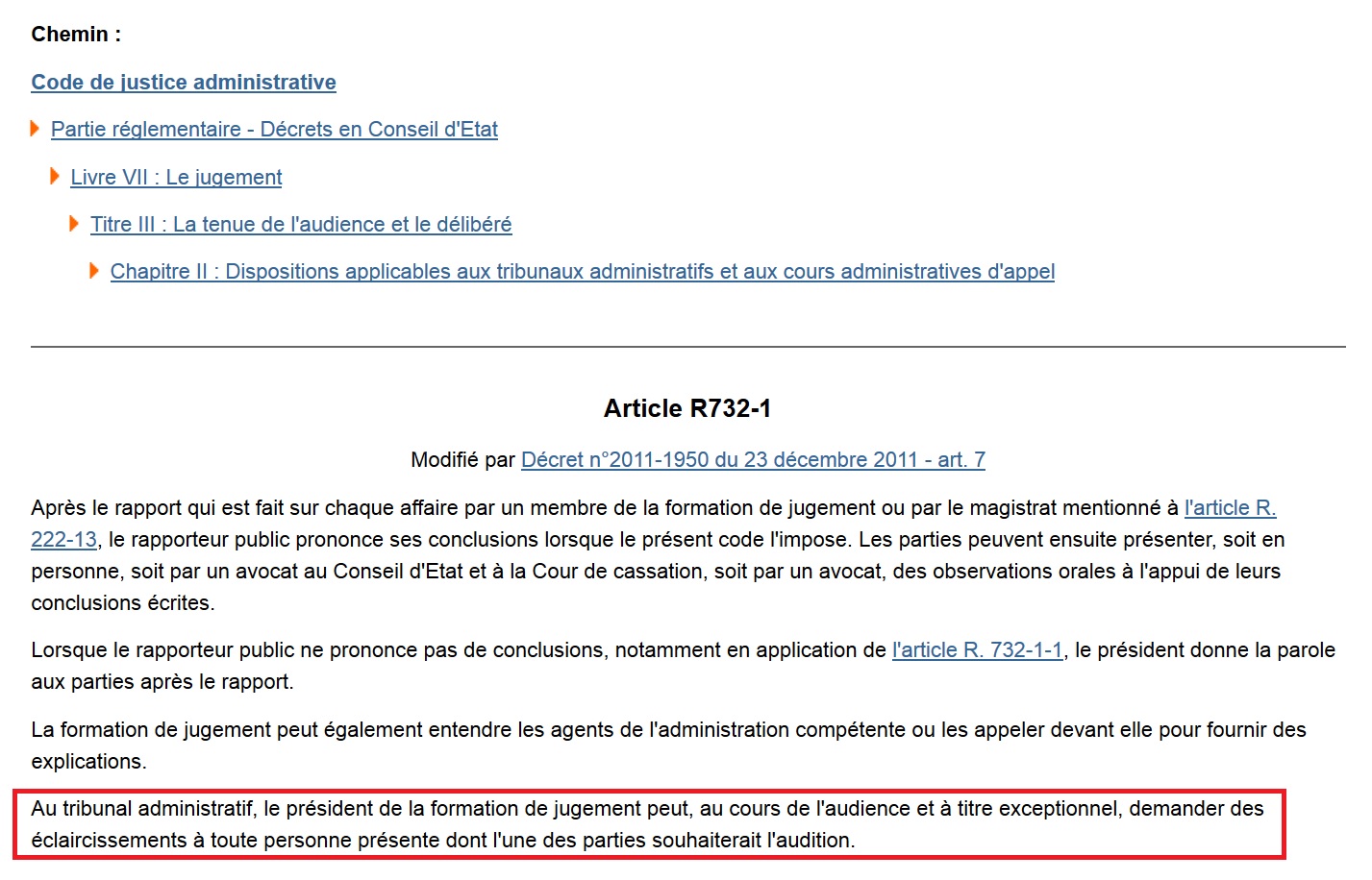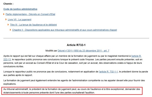 La Loi me permet de demander l’intervention de témoins à l’audience. C’est l’article R.732-1 du Code de justice administrative, en son quatrième alinéa :