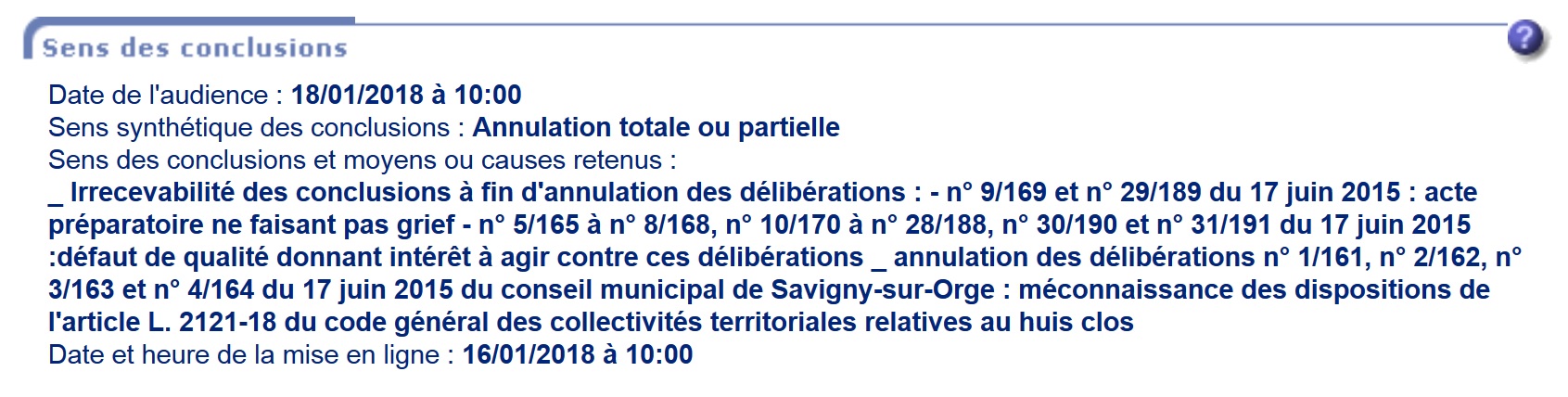 C’est une annonce de très bonne augure, qui reste désormais à transformer lors de l’audience au cours de laquelle je devrais surtout me battre pour faire valoir mon intérêt à agir de contribuable afin d’obtenir l’annulation de la délibération fermant la Savinière et la crèche familiale ! Toujours est-il que le rapporteur public reconnait que les dispositions du huis clos du Conseil municipal du 17 juin 2015 ont bien été enfreintes !