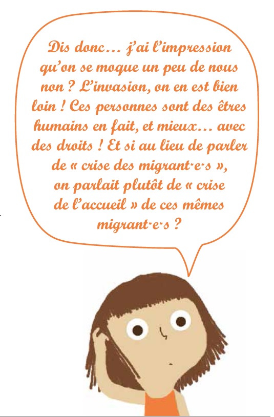 Tout n’est cependant pas à jeter dans ce livret, car pour une fois, les différentes définitions sont plutôt correctes. Et que ça explique bien que le choix de migrer des parents ne rend pas responsables les enfants, et que tous doivent considérer qu’ils ont les mêmes droits. Mais c’est rapidement chiant parce que c’est politique, c’est bienpensant, c’est gauchisant, c’est de parti pris, et ça bourre les crânes des jeunes qui n’ont pas un grand regard critique.