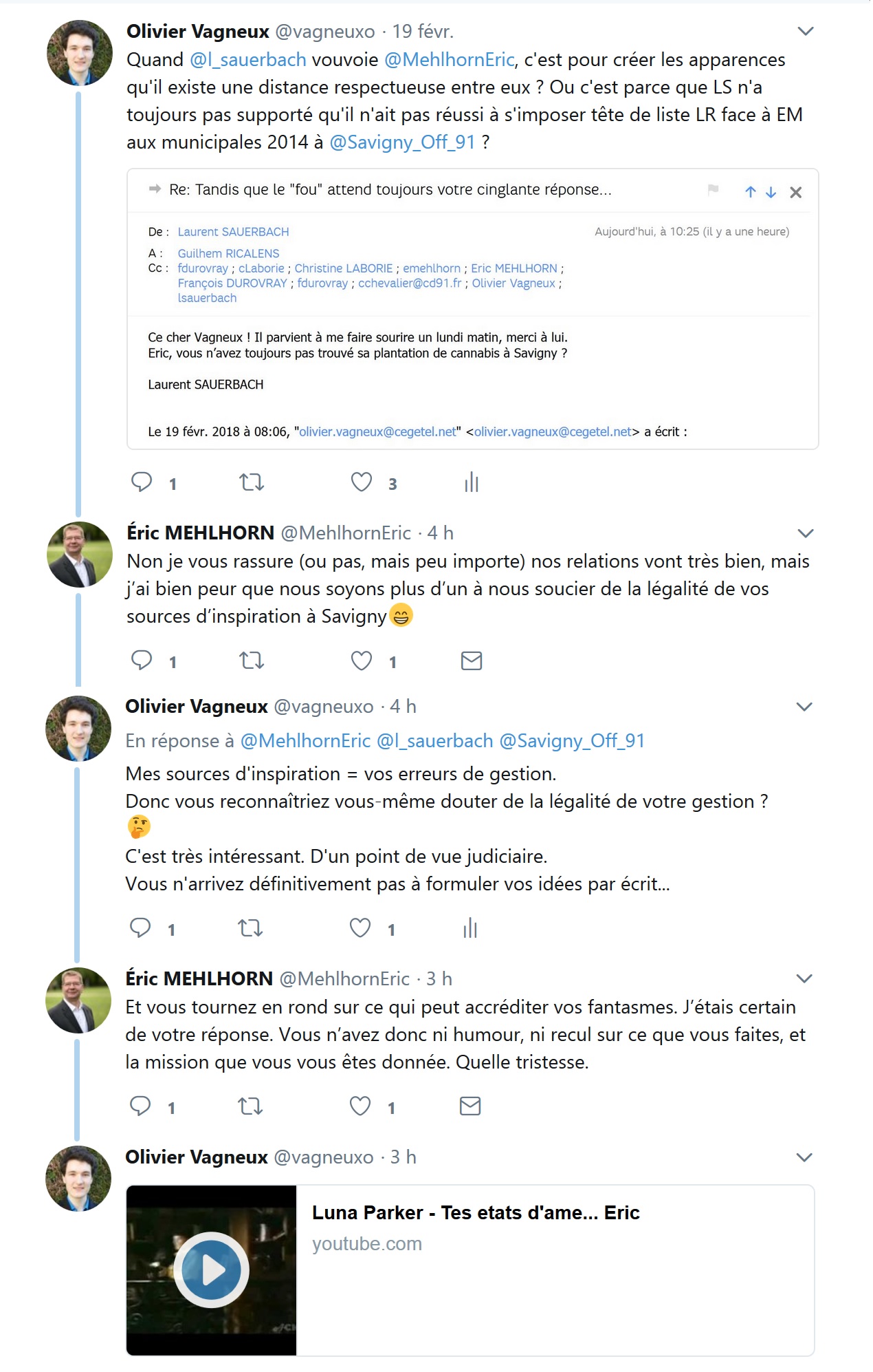 Est-ce donc là une stratégie politique pour contester mes écrits ? Parce que la population commencerait à douter d’un maire qu’un jeune de 26 ans conchie allègrement ? (Qu’est-ce qu’il lui a mis, VAGNEUX, dans ses derniers vœux !) Mais au final, cela ne peut que me renforcer en me donnant une importance que je ne suis pas censé avoir… Regardez, le maire de Savigny me lit ! Ce faisant, Éric MEHLHORN avoue une faiblesse, que je retourne contre lui dans mes réponses.