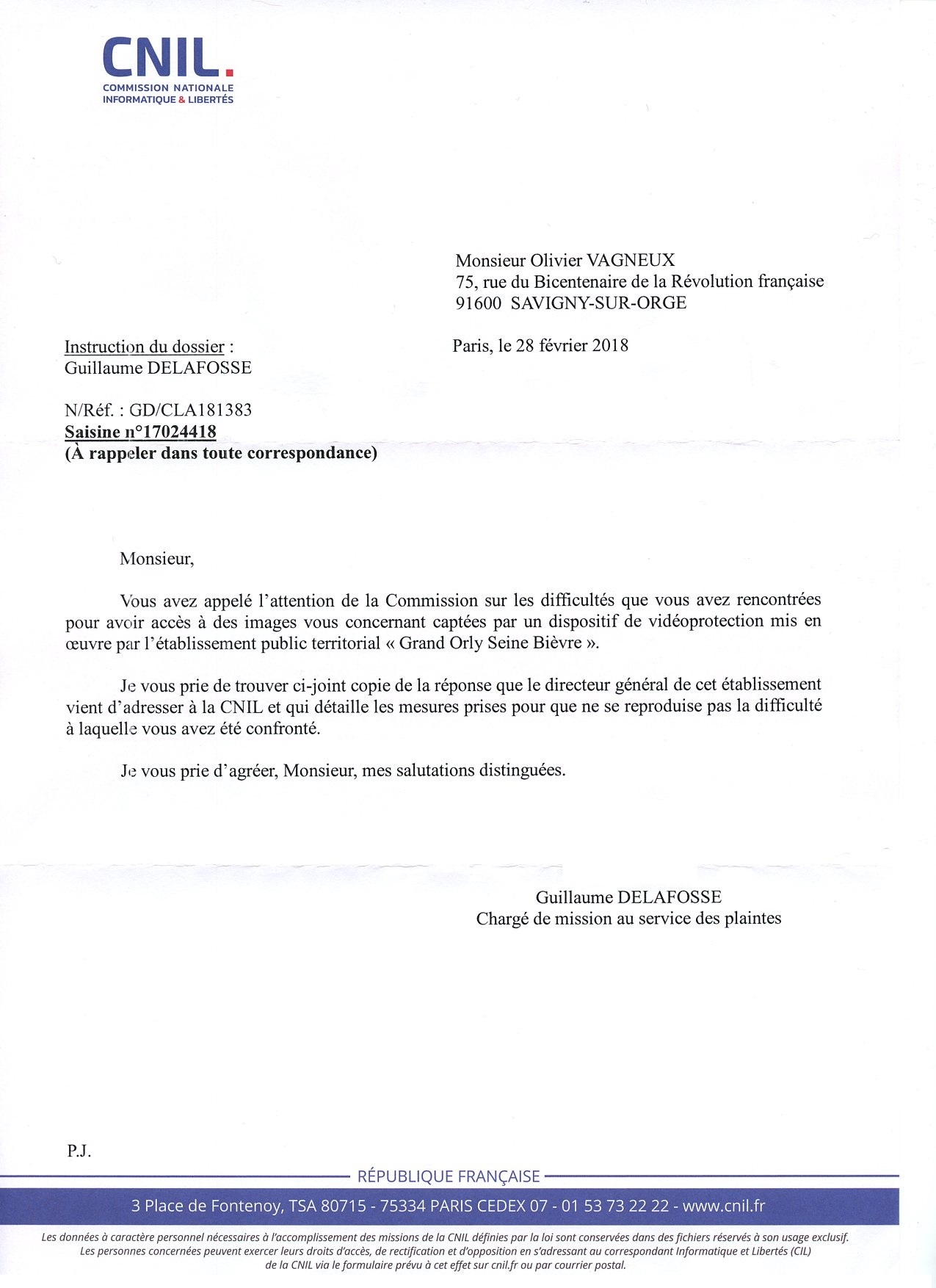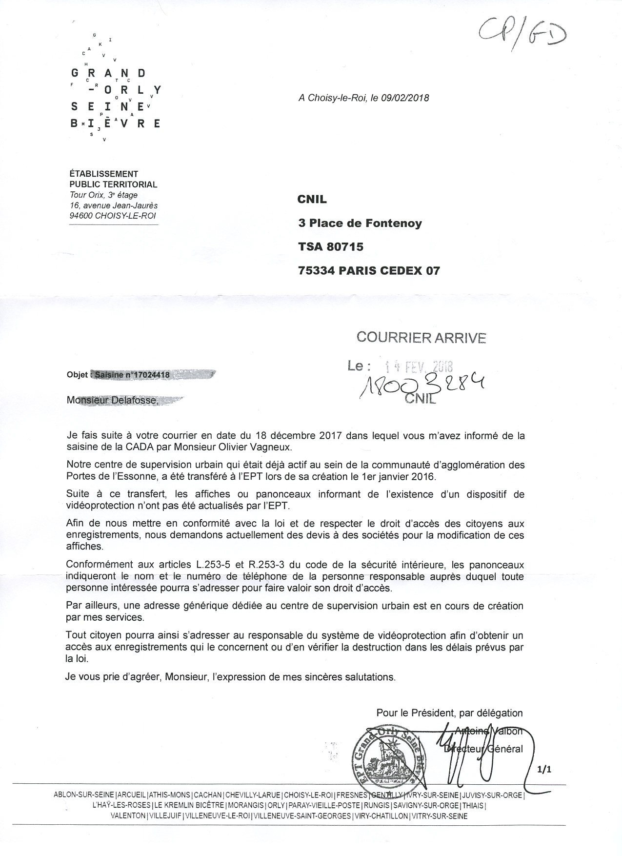 Nous avons obtenu des promesses écrites. Il va maintenant falloir surveiller leur concrète réalisation. À noter que le Directeur général des services de l’intercommunalité du Grand-Orly Seine Bièvre (GOSB), Antoine VALBON (je me suis toujours demandé s’il avait un lien de parenté avec Georges VALBON), confond cependant la CADA (Commission d’accès aux documents administratifs) et la CNIL (Commission nationale informatique et libertés)…